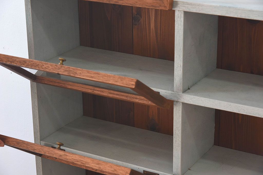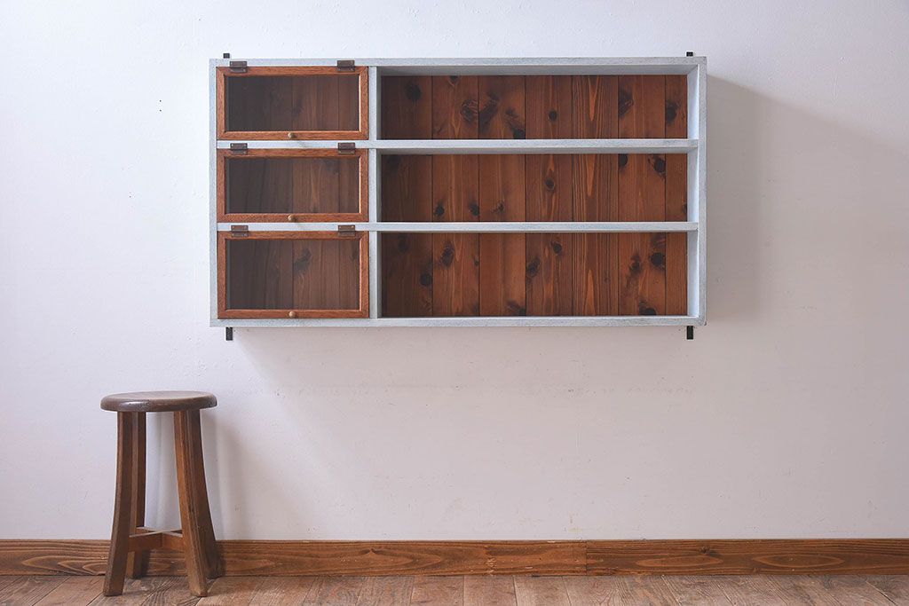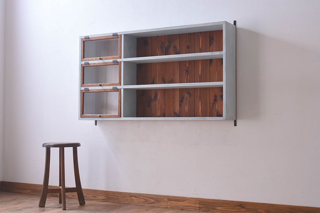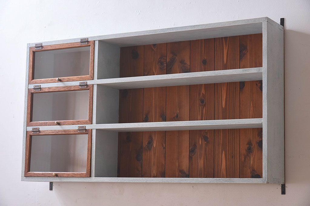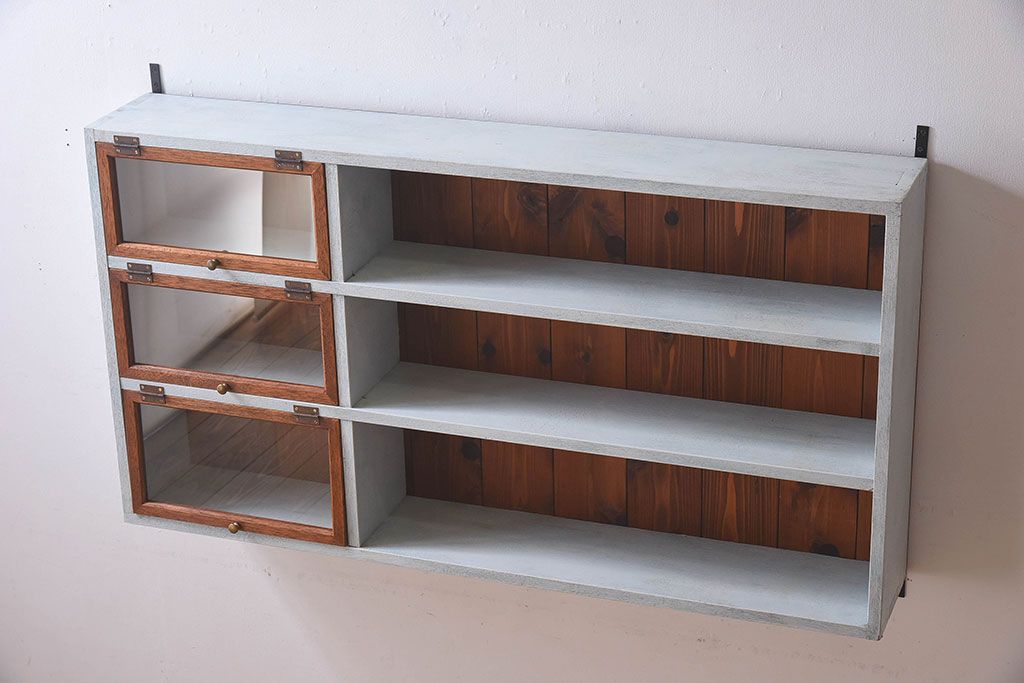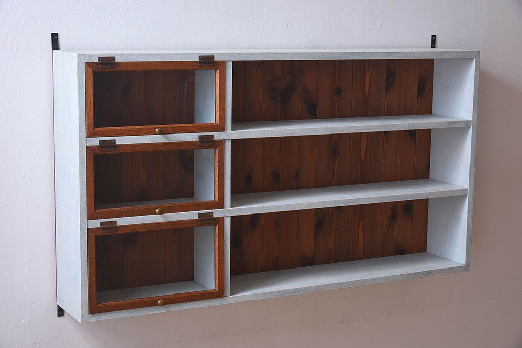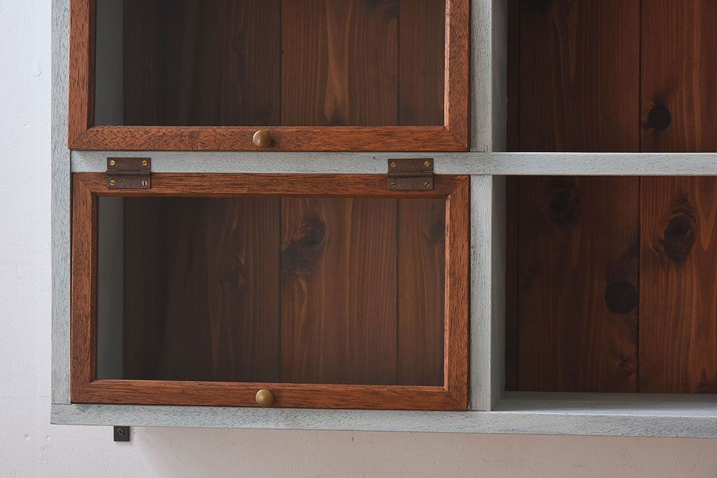 ペイント家具 クリアガラスのパタパタ扉付き!ウォールラック(壁掛け飾り棚、収納棚、食器棚)