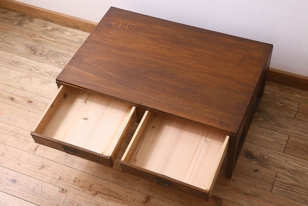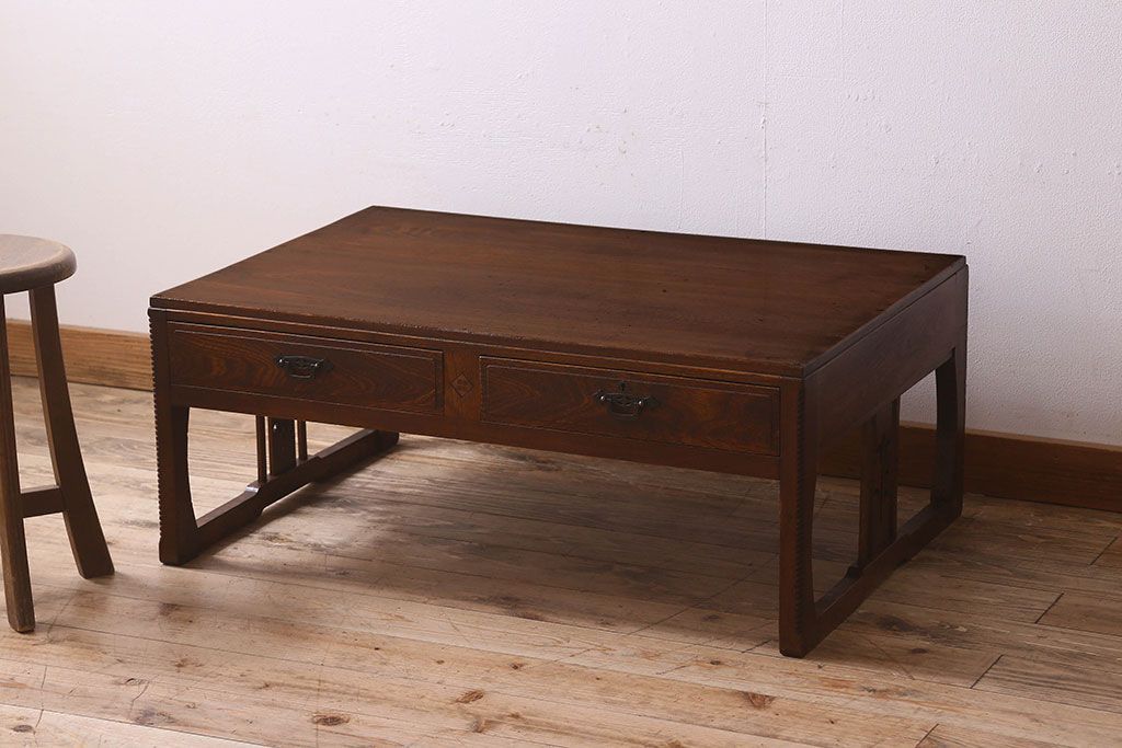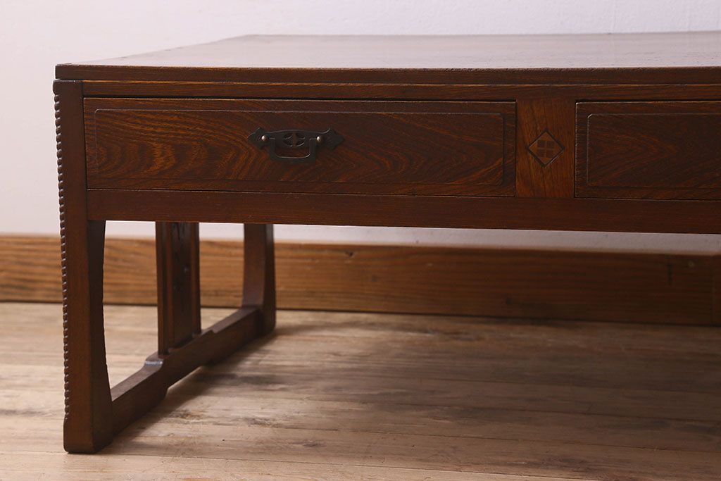 ラフジュ工房> テーブル> 作業台 > アンティーク家具 大正ロマン 栓材 透かし彫りが魅力的なローテーブル(文机、座卓、作業台)