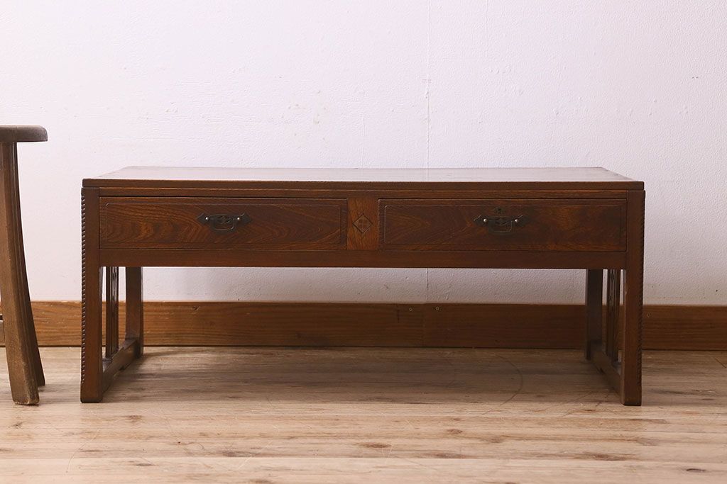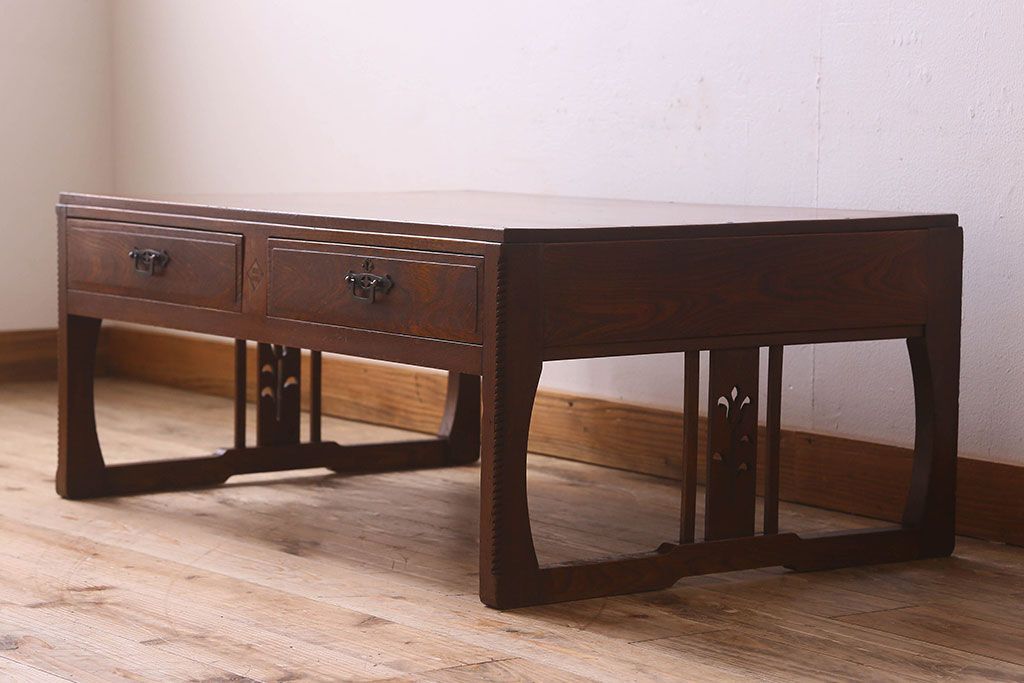 ラフジュ工房> テーブル> 座卓 > アンティーク家具 大正ロマン 栓材 透かし彫りが魅力的なローテーブル(文机、座卓、作業台)