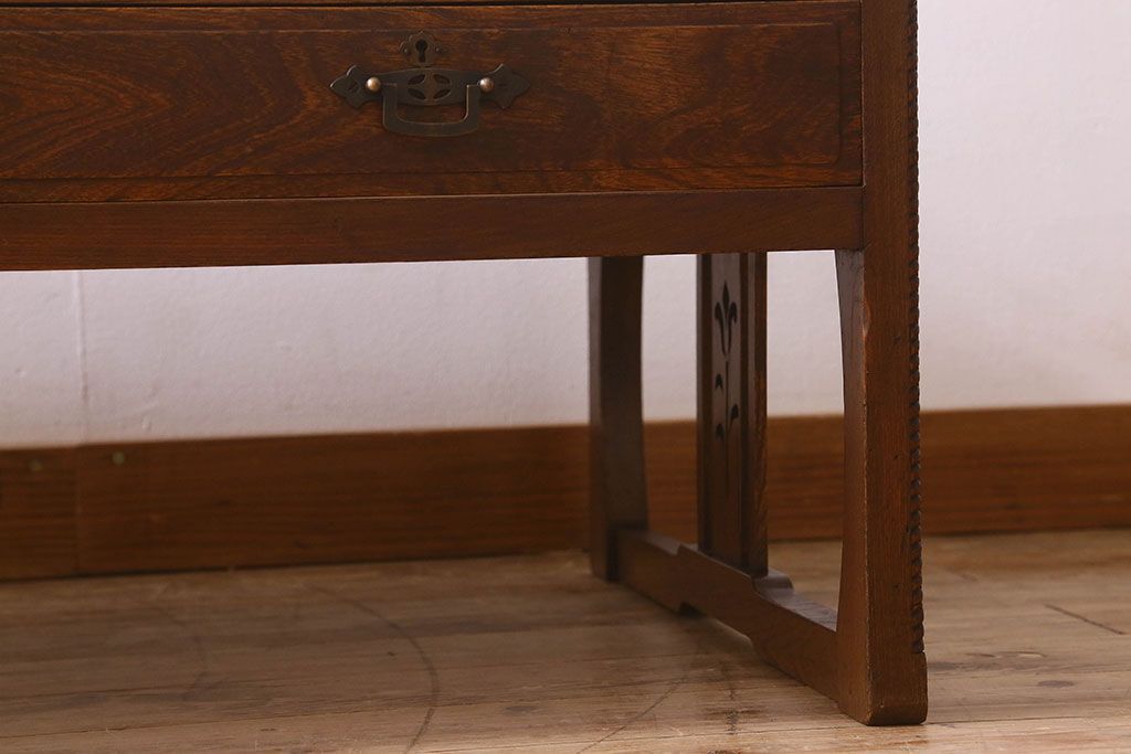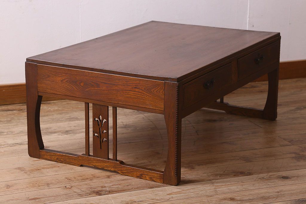アンティーク家具 大正ロマン 栓材 透かし彫りが魅力的なローテーブル(文机、座卓、作業台)