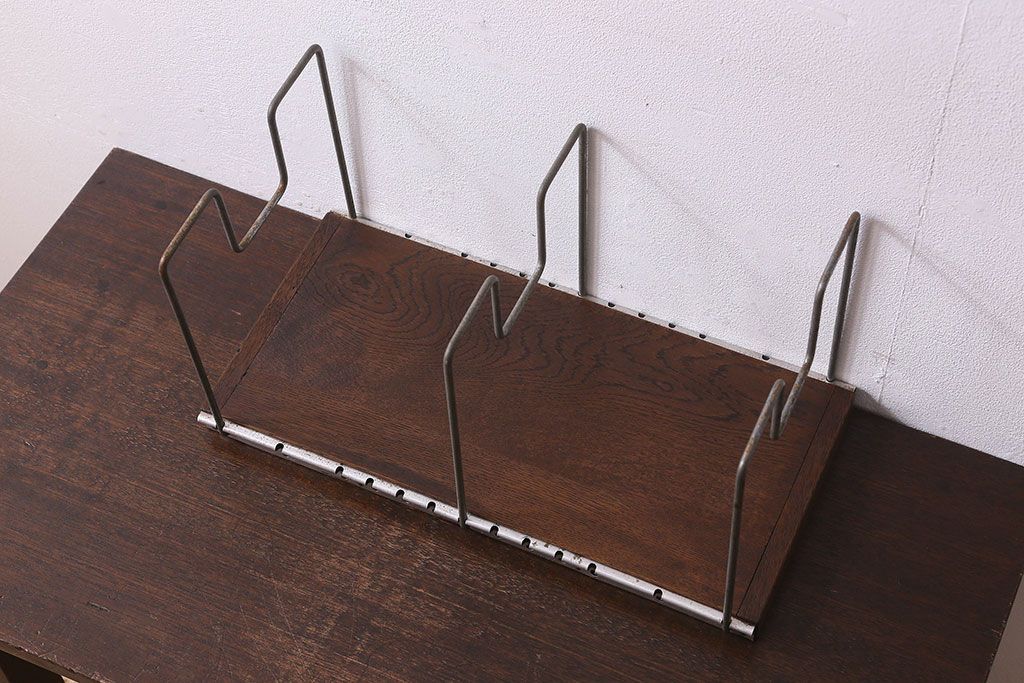 アンティーク雑貨 昭和レトロ 仕切りの金具が調節できる便利なブックスタンド(本立て)