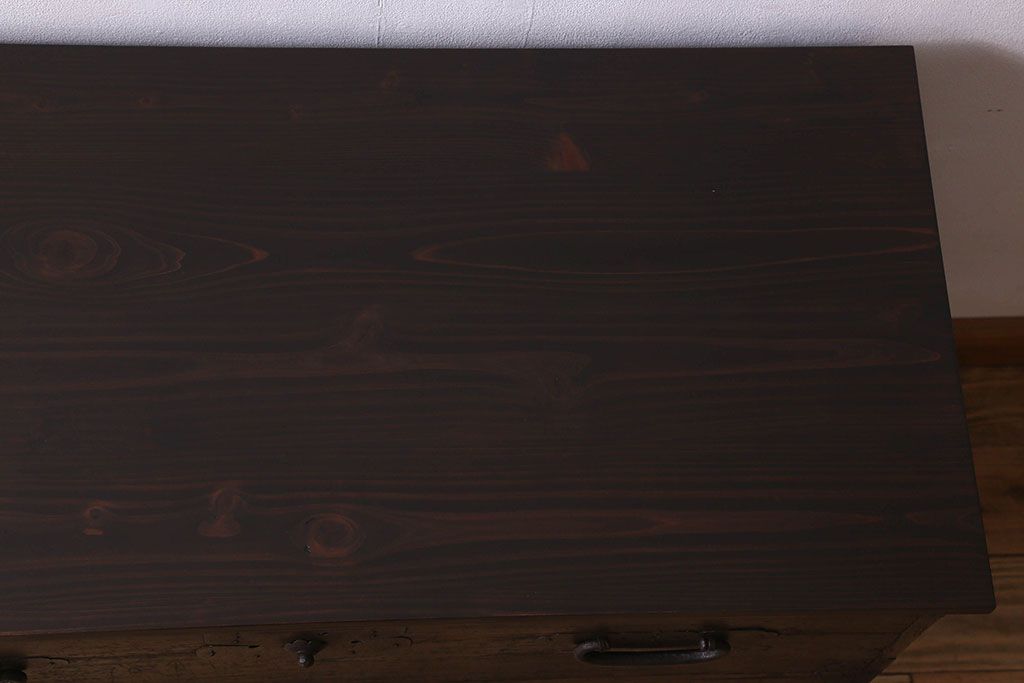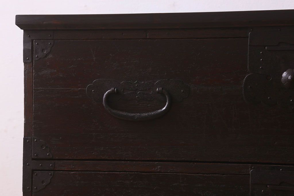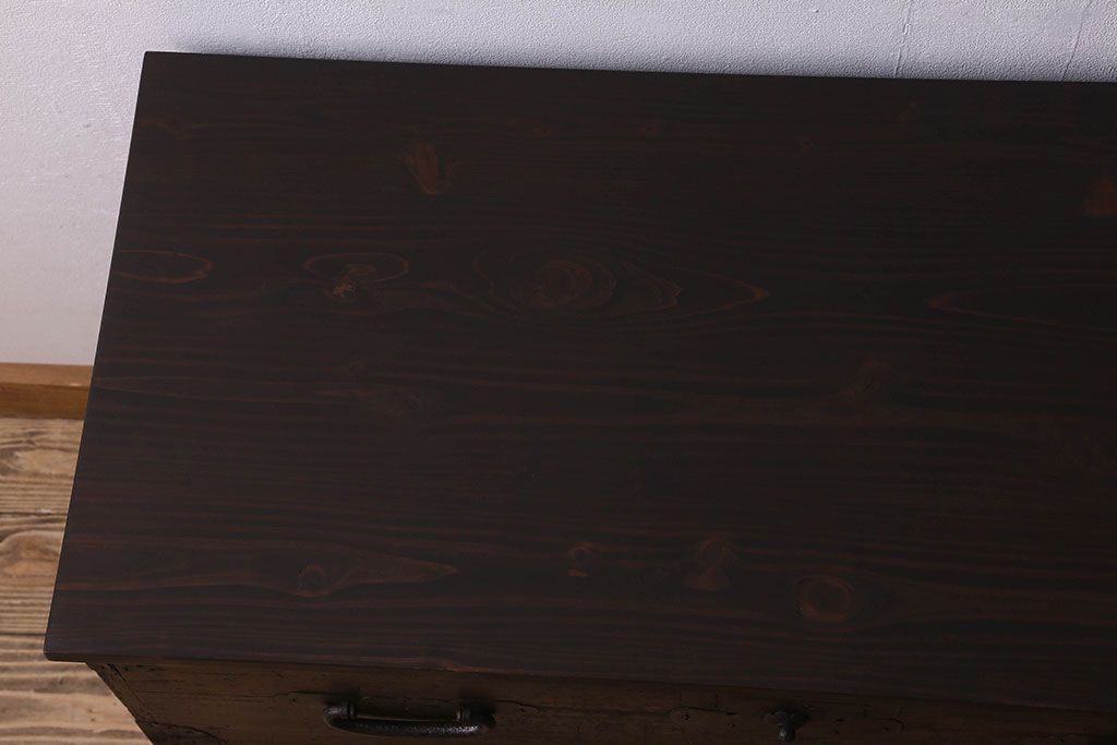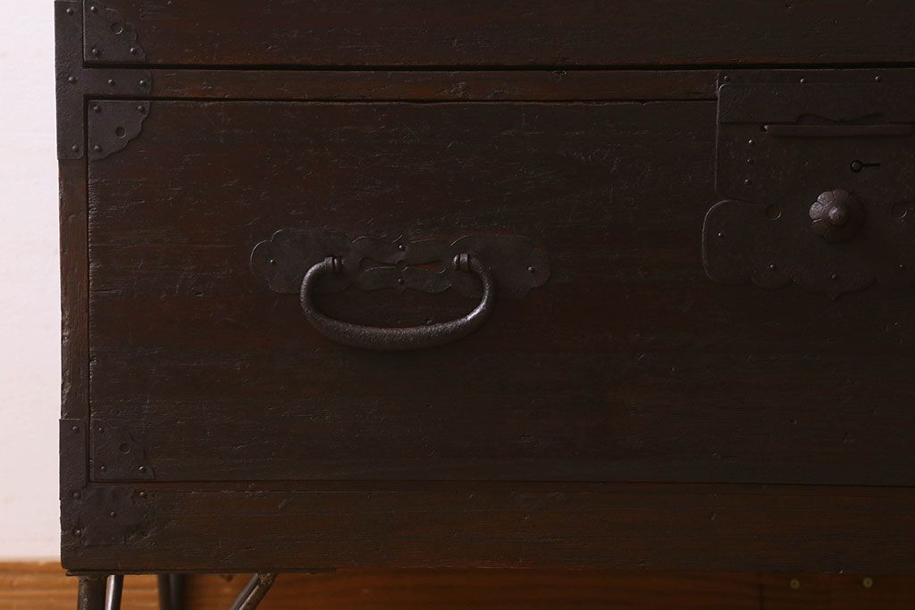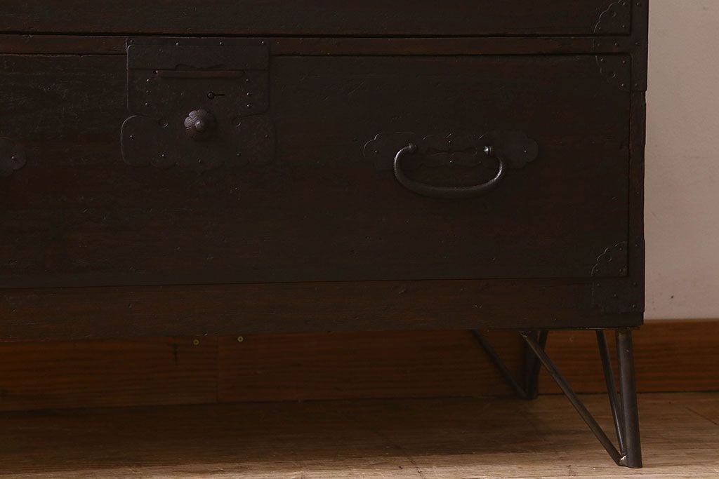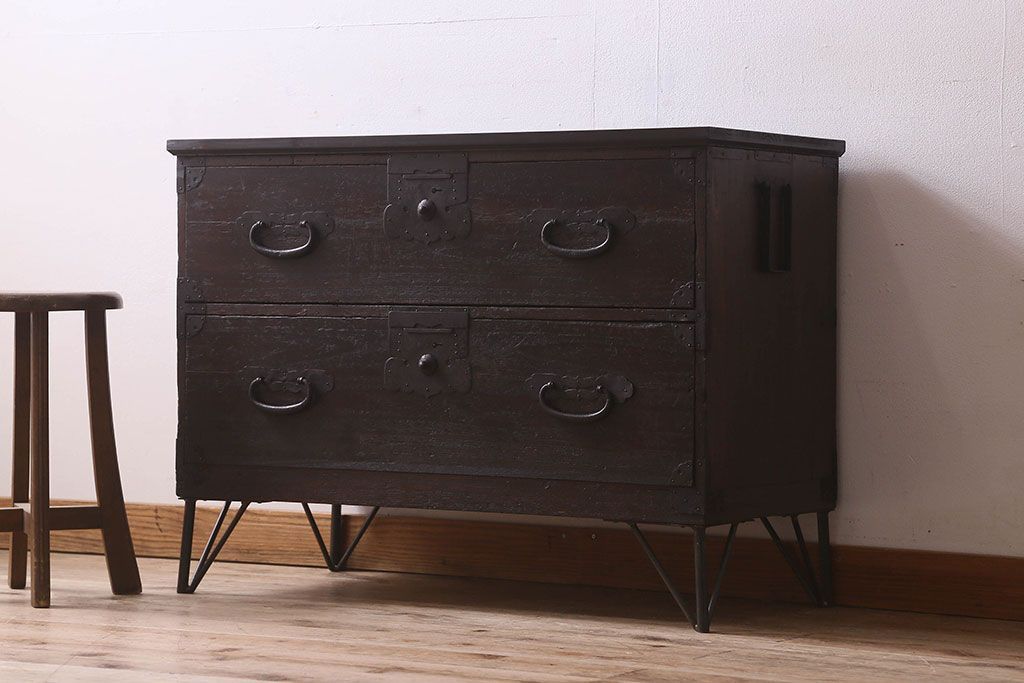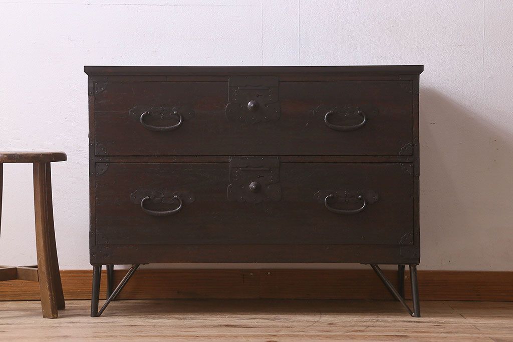 アンティーク家具 和製アンティーク 鉄脚付き!前面桐材の時代箪笥ローボード(ローチェスト、引き出し、衣装箪笥、テ レビ台)