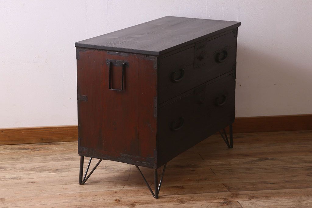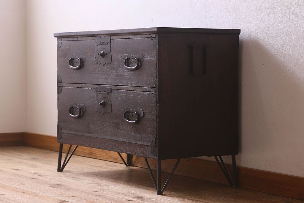ラフジュ工房> チェスト・引き出し> ローチェスト > アンティーク家具 和製アンティーク 鉄脚付き!前面桐材の時代箪笥ローボード(ローチェスト、引き出し、衣装箪笥、テ レビ台)