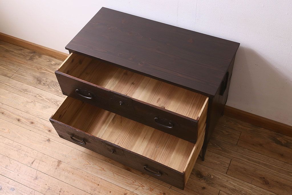 ラフジュ工房> 和箪笥 > アンティーク家具 和製アンティーク 鉄脚付き!前面桐材の時代箪笥ローボード(ローチェスト、引き出し、衣装箪笥、テ レビ台)