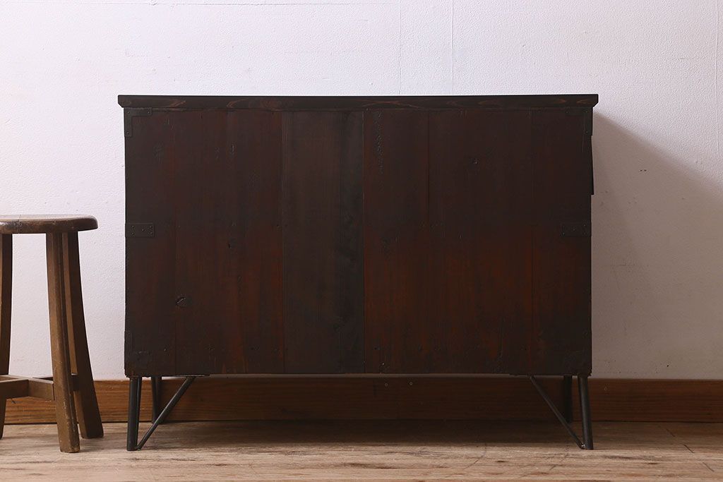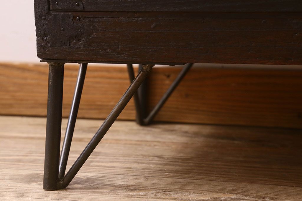 ラフジュ工房> キャビネット・戸棚> テレビ台・ローボード > アンティーク家具 和製アンティーク 鉄脚付き!前面桐材の時代箪笥ローボード(ローチェスト、引き出し、衣装箪笥、テ レビ台)