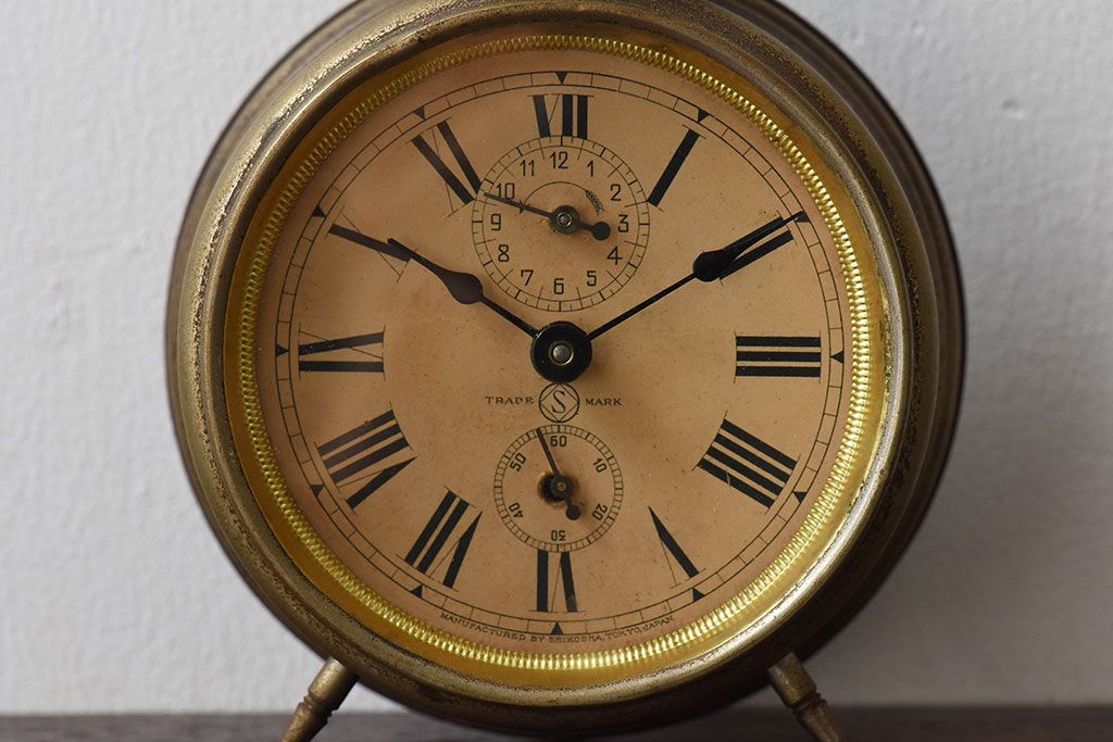 時計> 掛け時計 > アンティーク雑貨 精工舎(SEIKOSHA) 明治〜大正期 へそ形目覚まし時計(置時計)