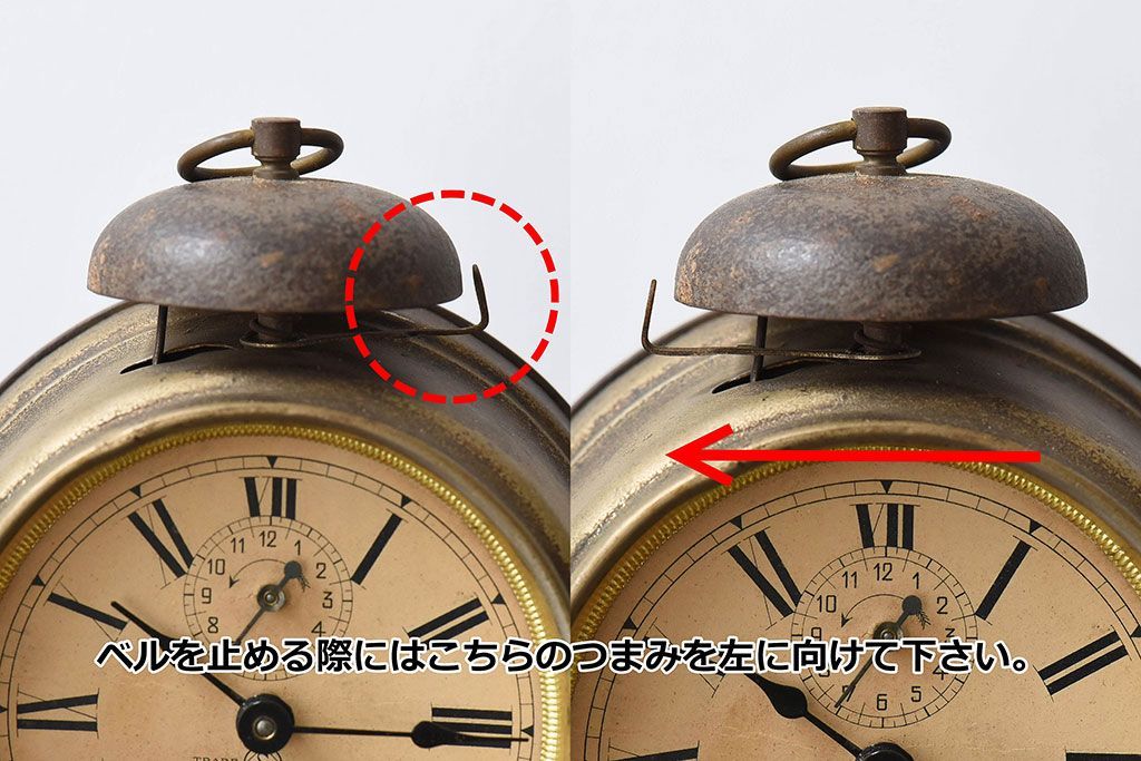 ベルは鳴り、動作は確認済みで問題なくご使用いただけるとは思いますが、あくまでも古いものですので機械部分の保証はできかねます。ご理解の上お願い致します。