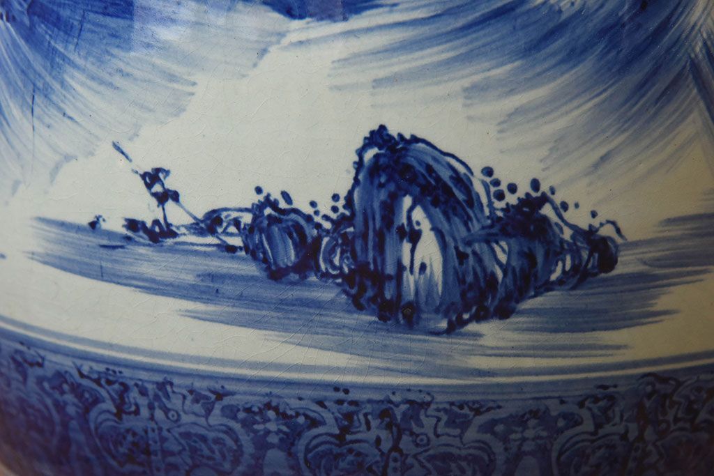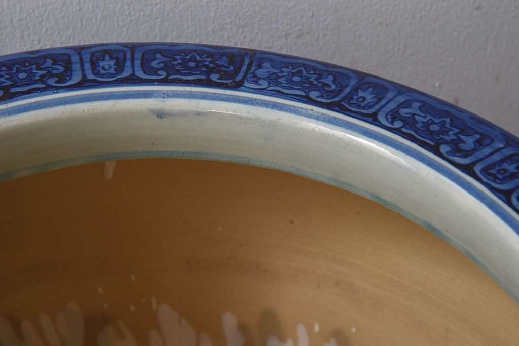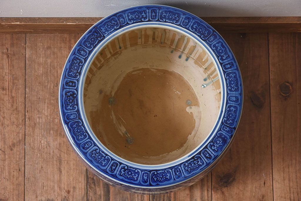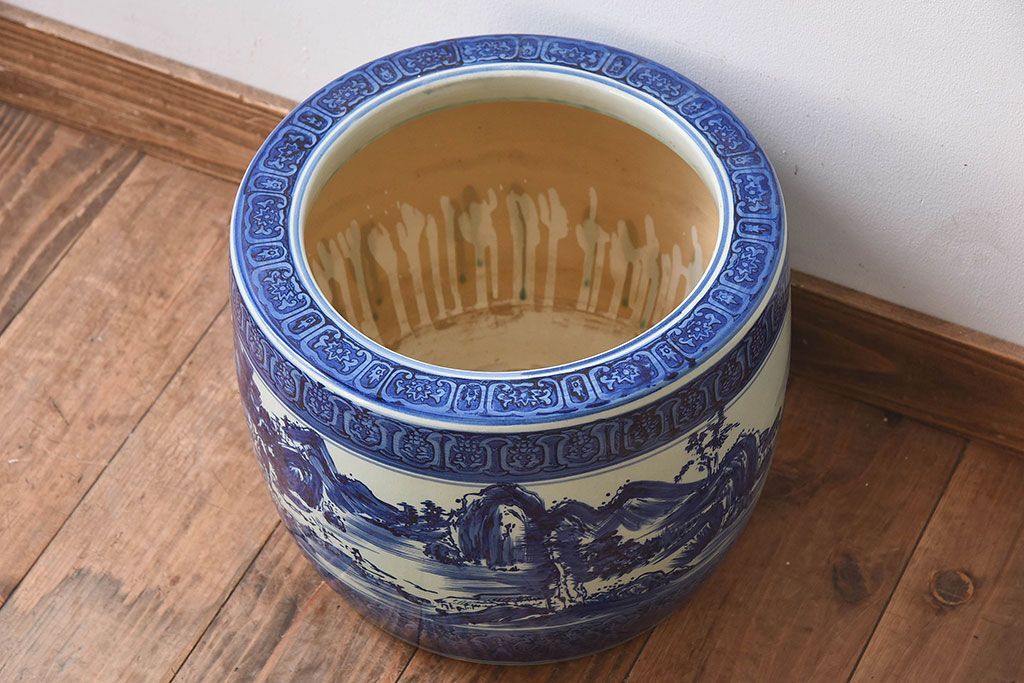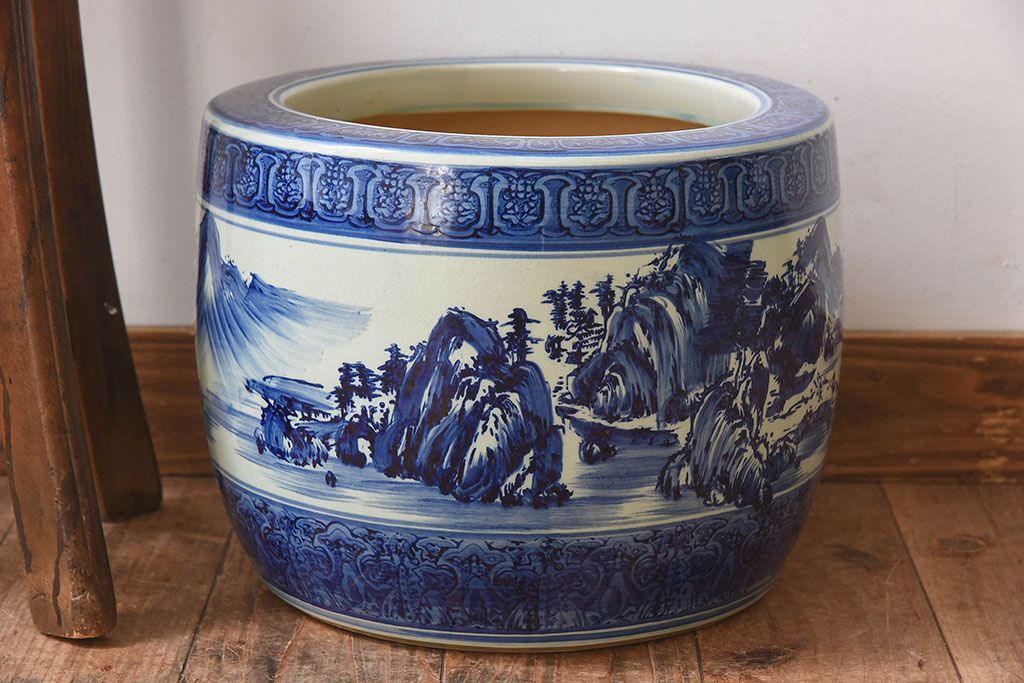 アンティーク雑貨 和製アンティーク 山水図 上品な染付瀬戸火鉢(鉢カバー)