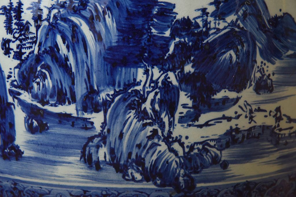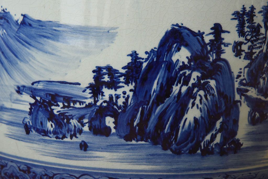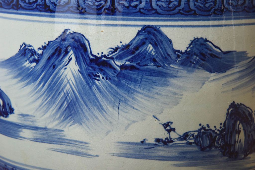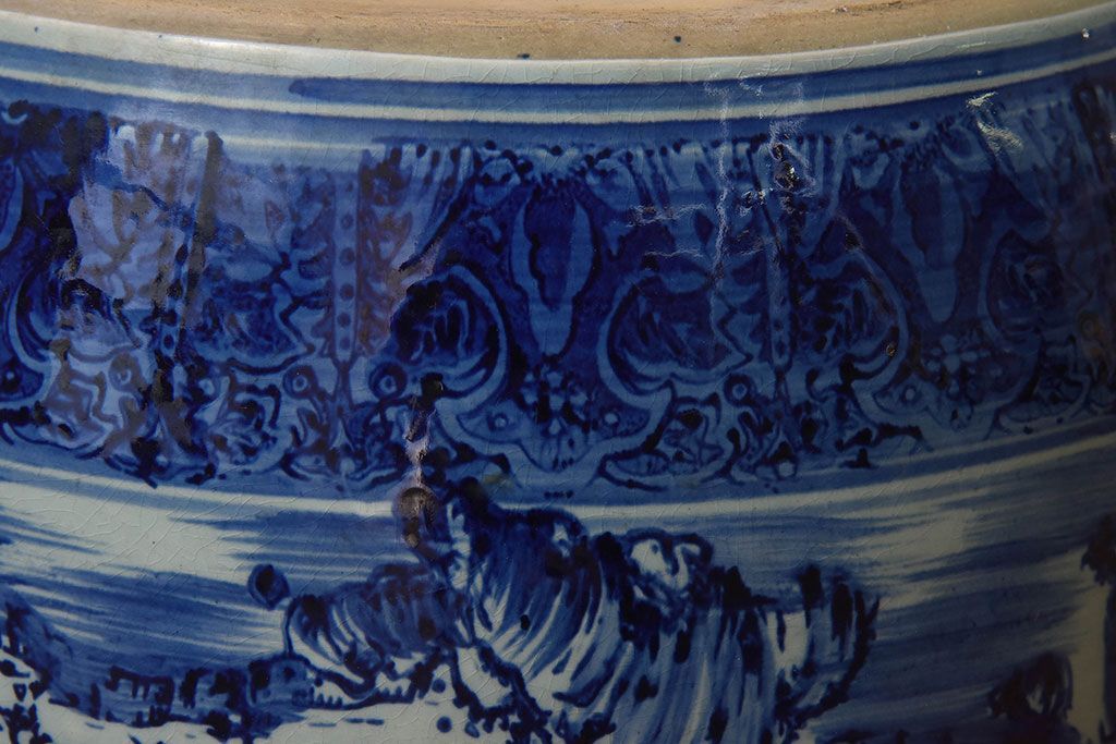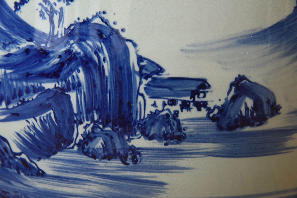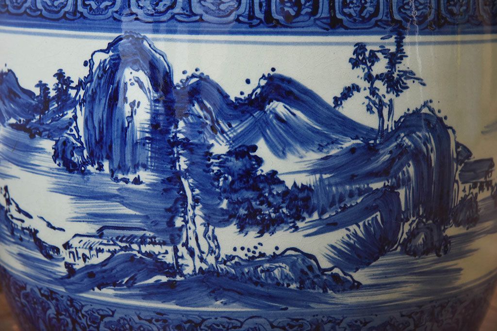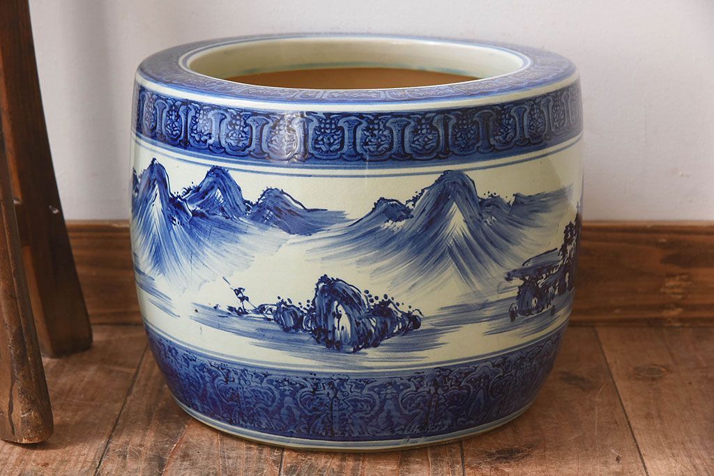 和製アンティーク 山水図 上品な染付瀬戸火鉢(鉢カバー)です。