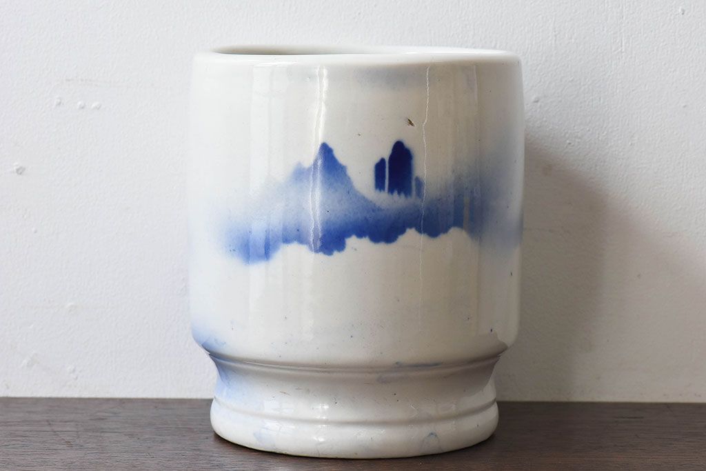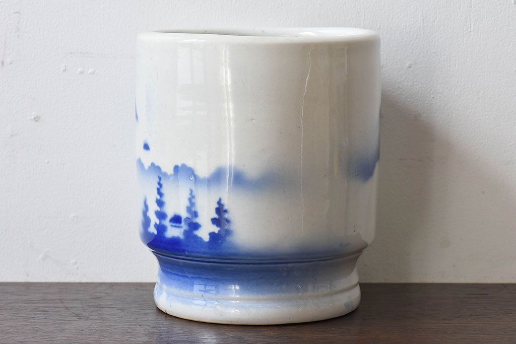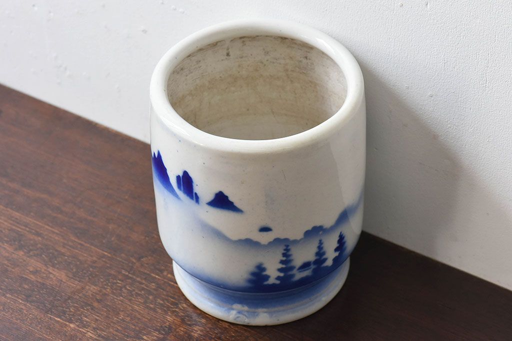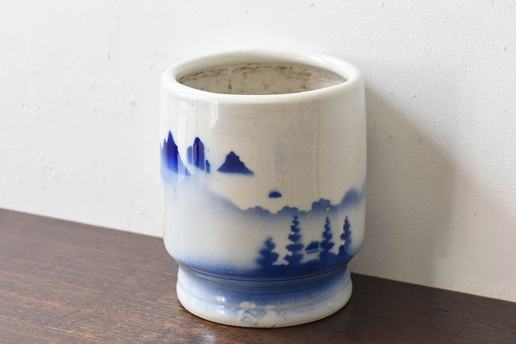 アンティーク雑貨 和製アンティーク 大正〜昭和期の小さな染付瀬戸火鉢(文具立て)