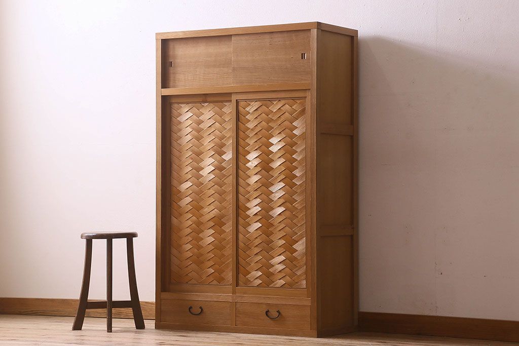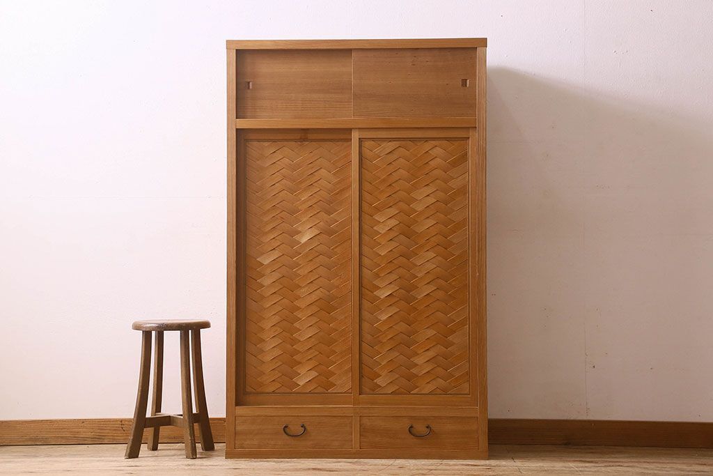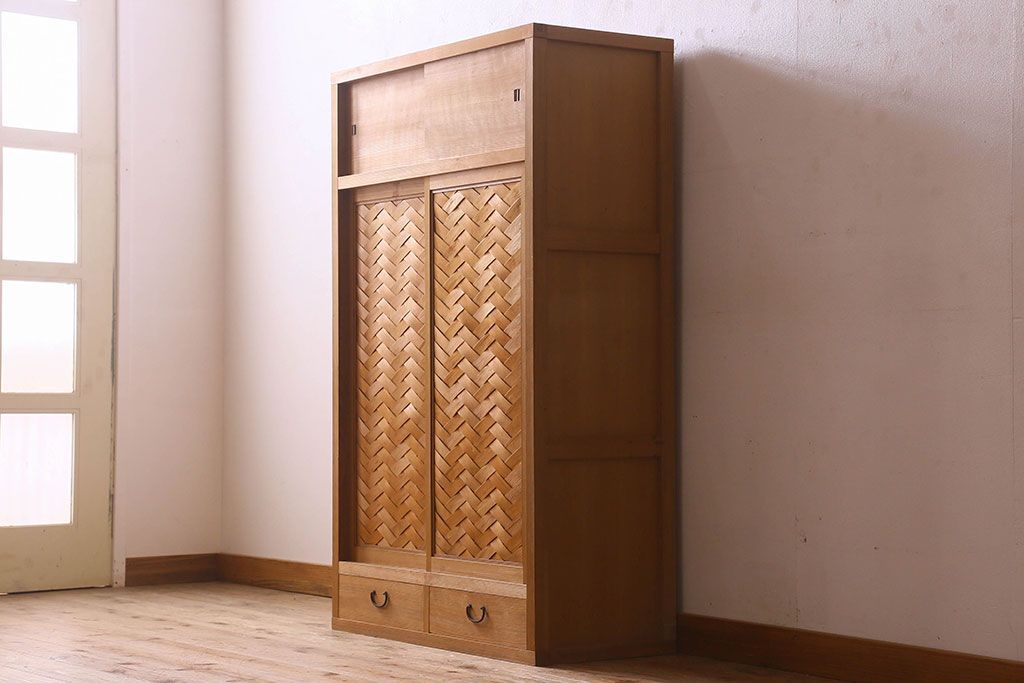 アンティーク家具 和モダン 1970年頃 明るい木肌が印象的な茶水屋(置き水屋、戸棚、収納棚)