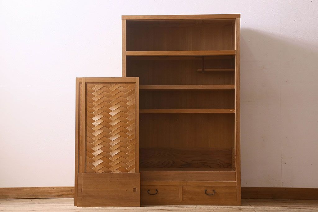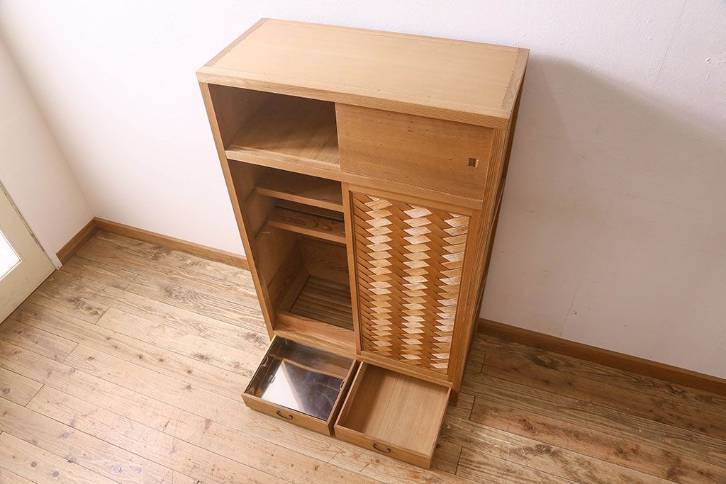 ラフジュ工房> 民芸家具 > アンティーク家具 和モダン 1970年頃 明るい木肌が印象的な茶水屋(置き水屋、戸棚、収納棚)