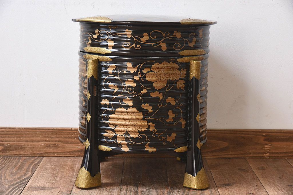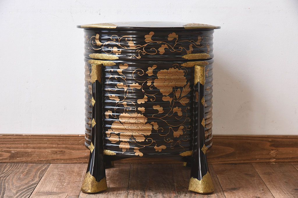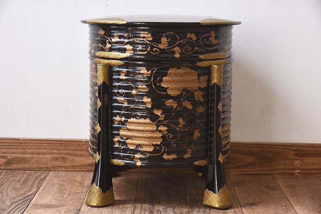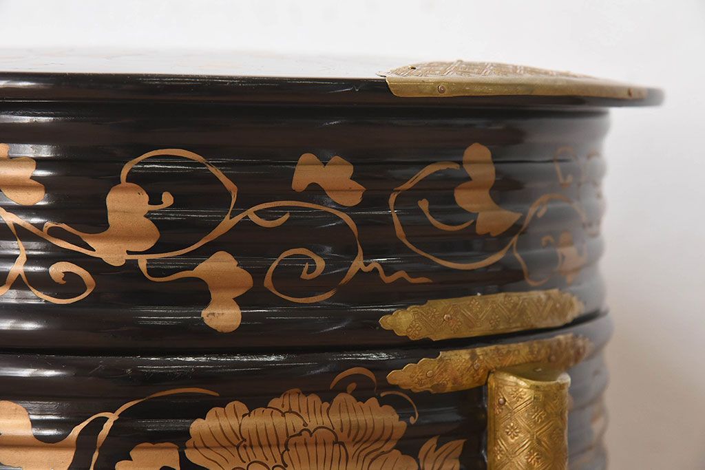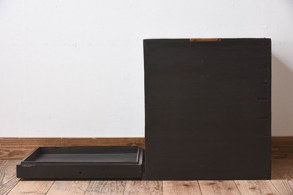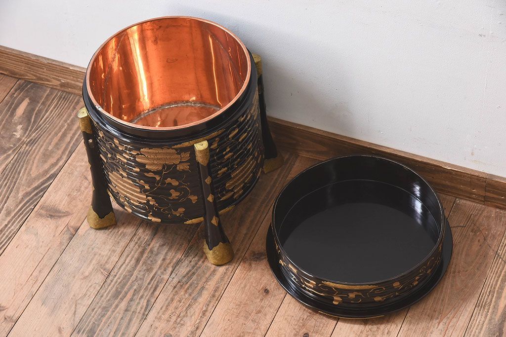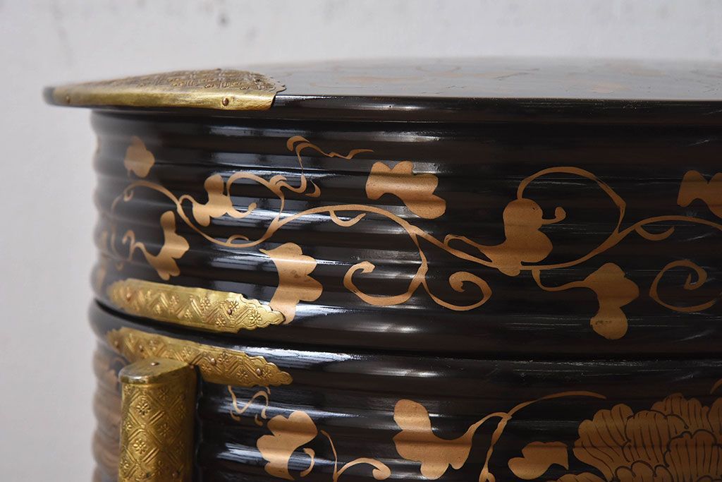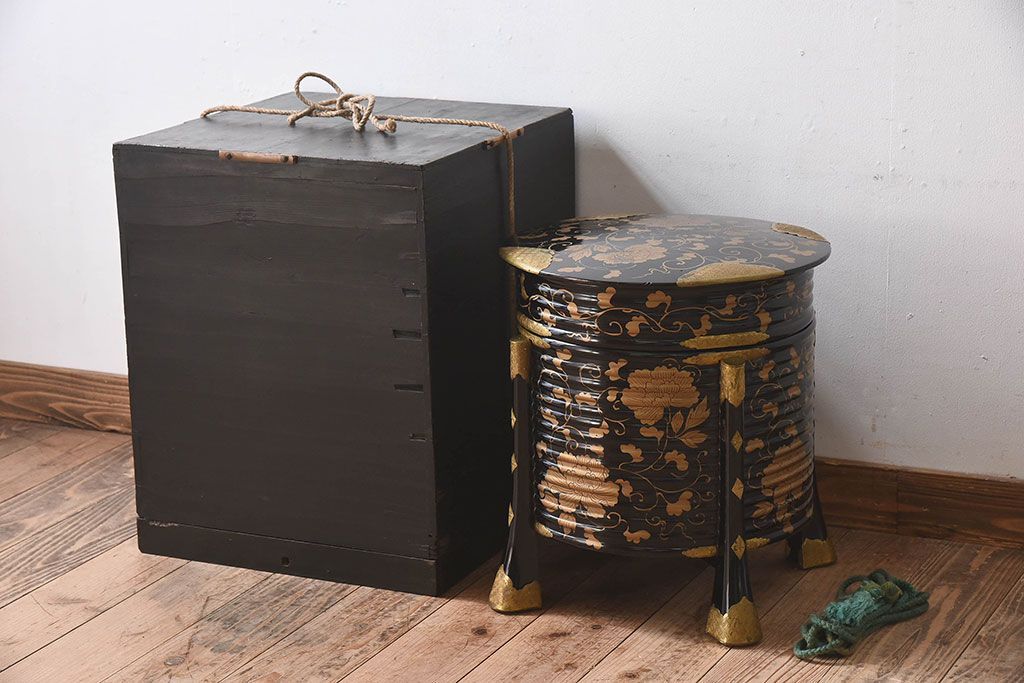 アンティーク雑貨 和製アンティーク 外箱付き!江戸〜明治期に作られた漆塗りの行器(保貝、鉢カバー、小物収納)