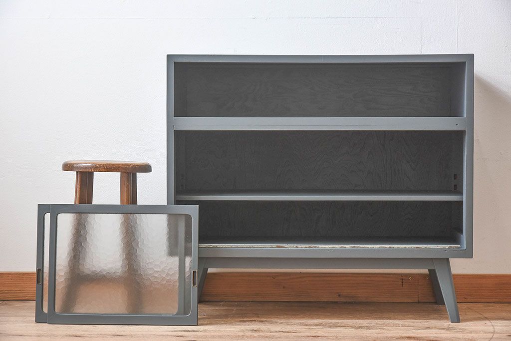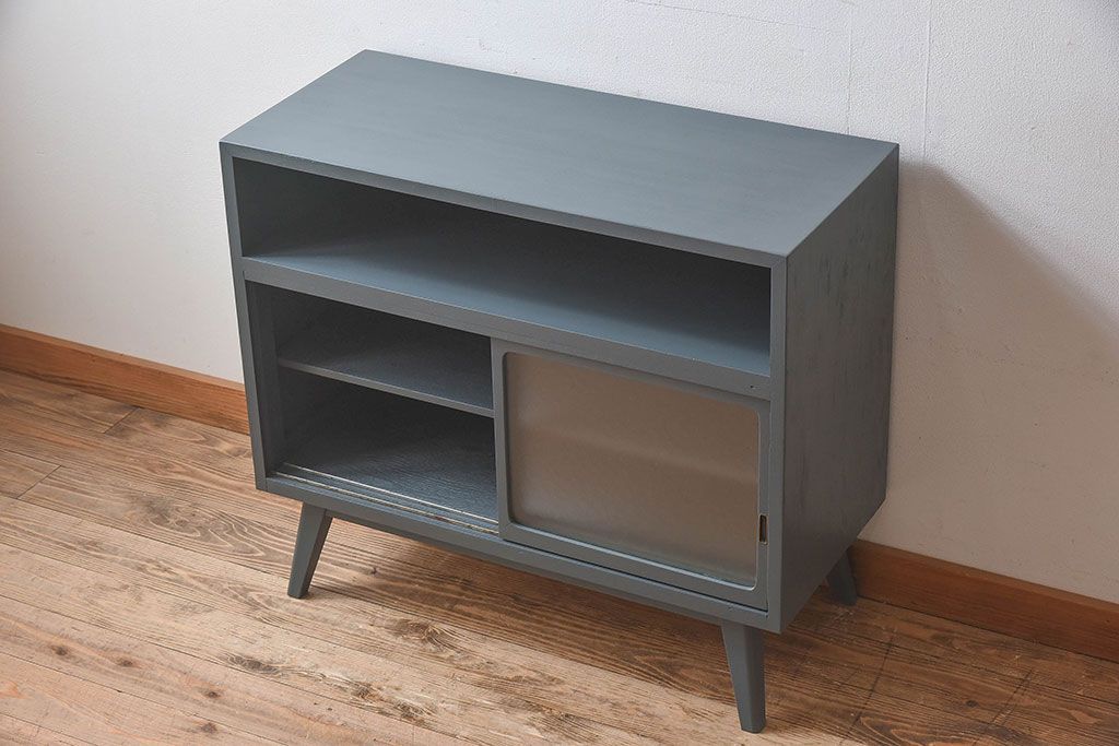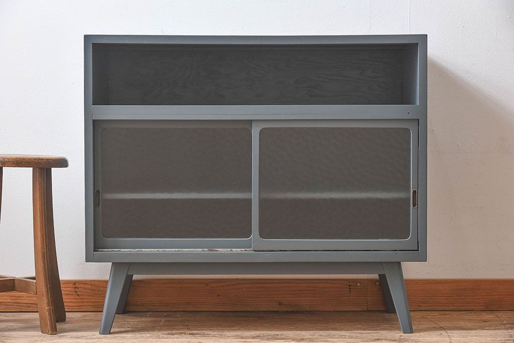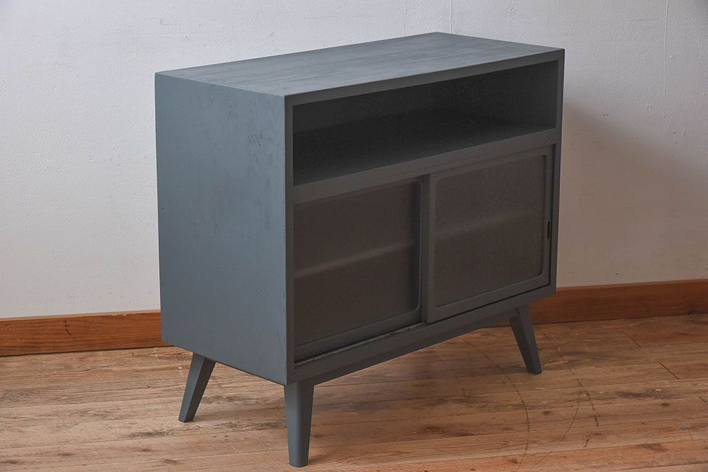 ペイント家具 シックな色合いが素敵な脚付き収納棚(戸棚、食器棚)