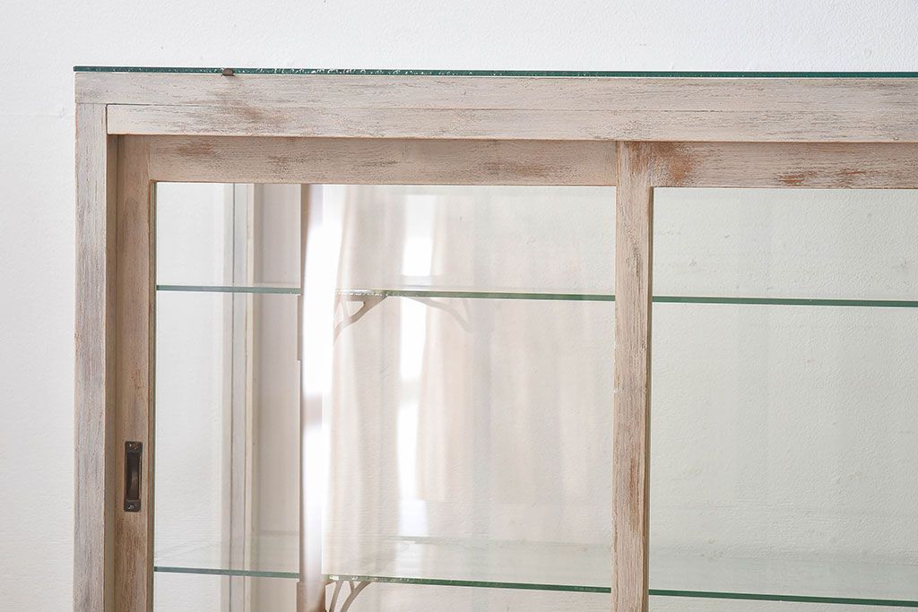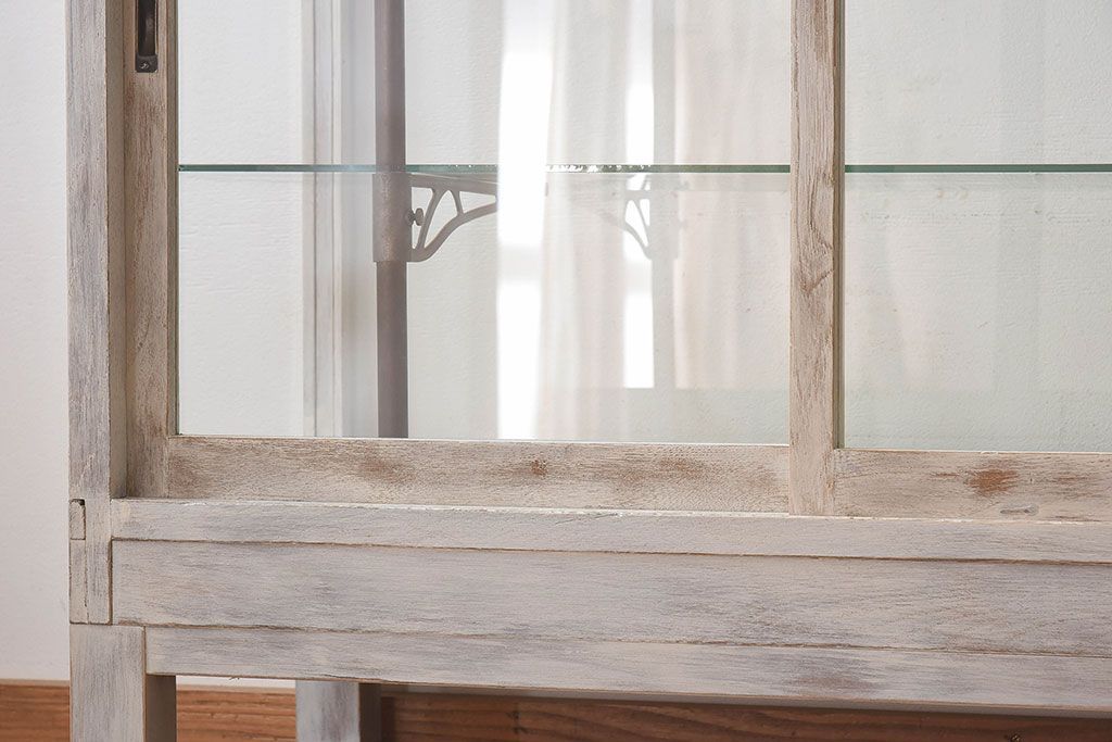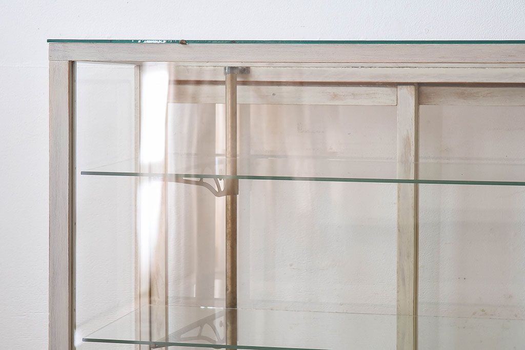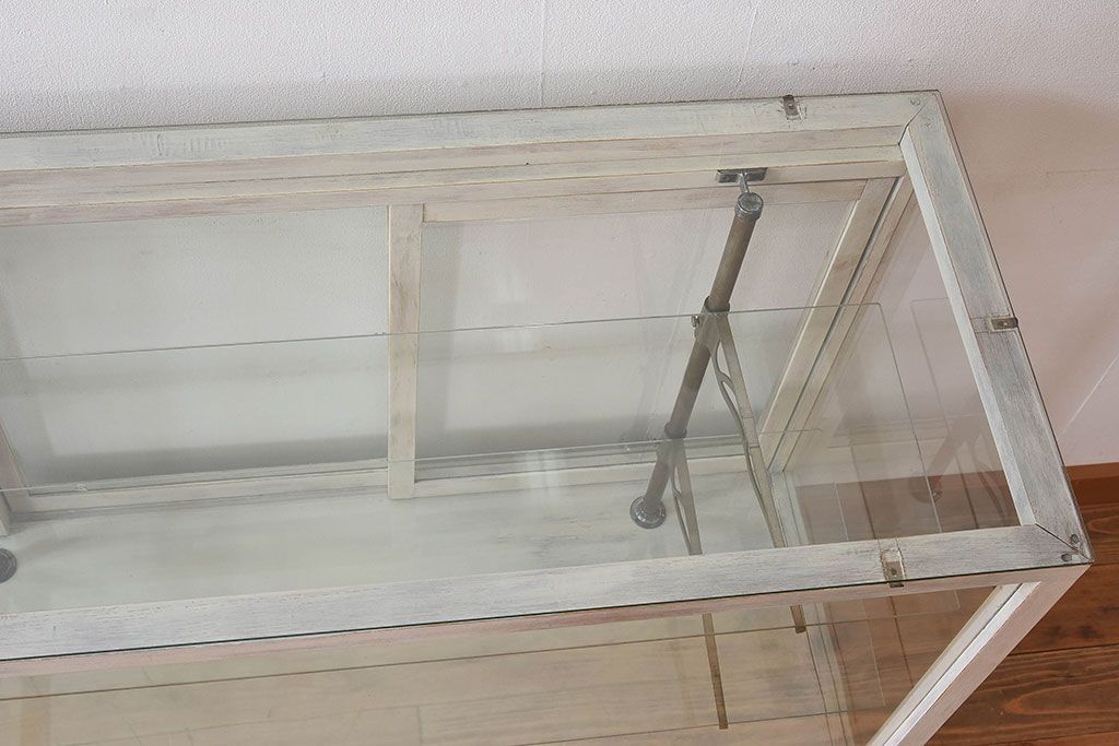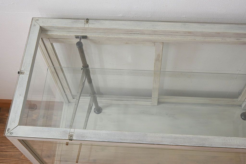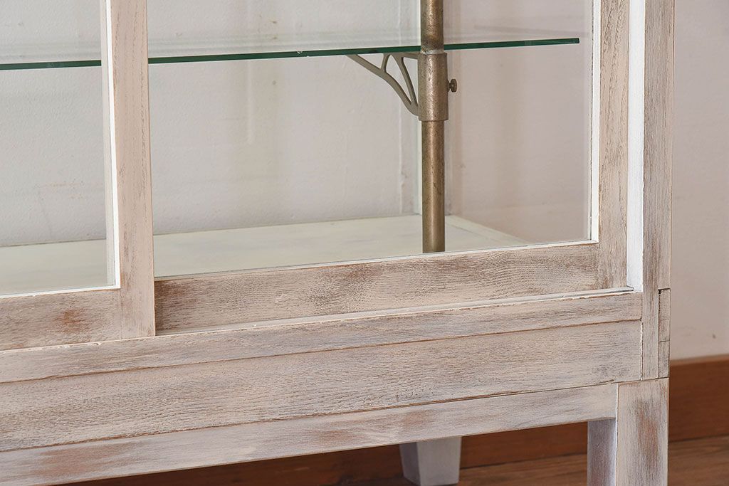 ペイント家具 シャビーな質感が味わい深いガラスケース(ショーケース、飾り棚、陳列棚)