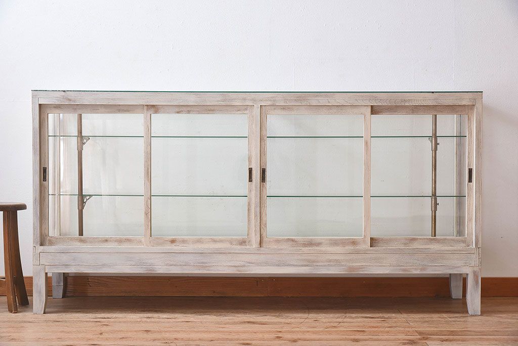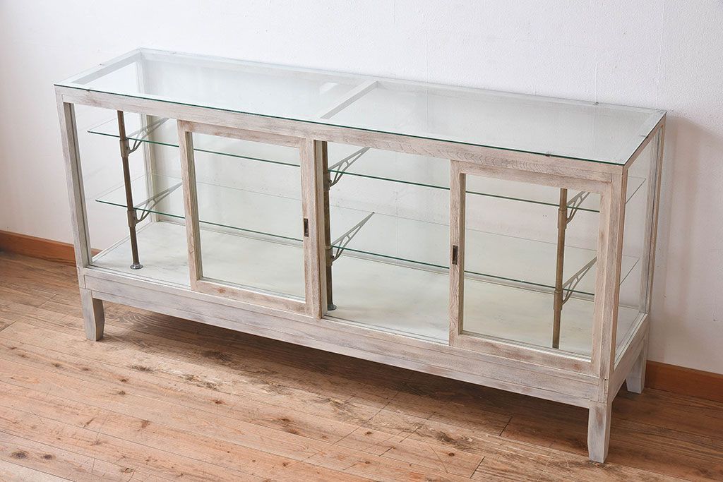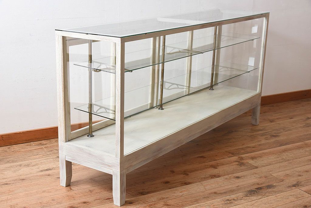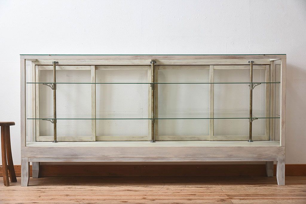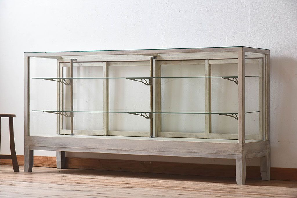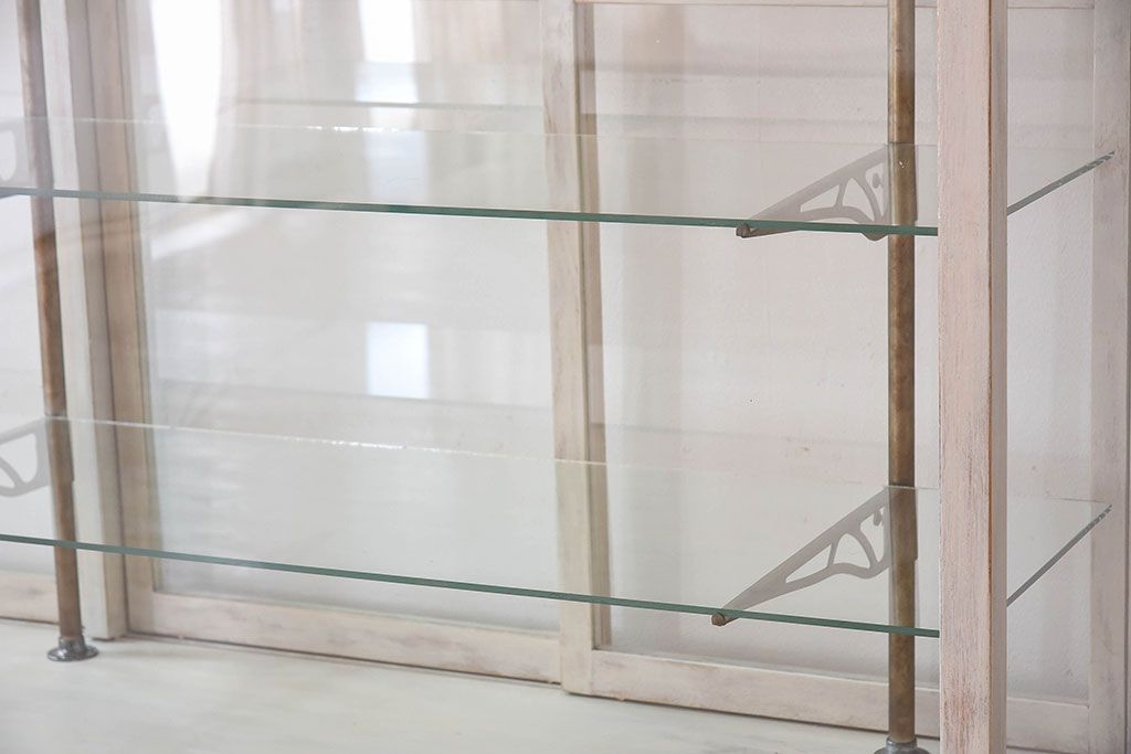 ペイント家具 シャビーな質感が味わい深いガラスケース(ショーケース、飾り棚、陳列棚)