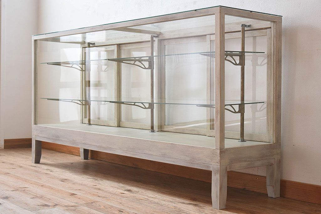ラフジュ工房> 店舗什器 > ペイント家具 シャビーな質感が味わい深いガラスケース(ショーケース、飾り棚、陳列棚)