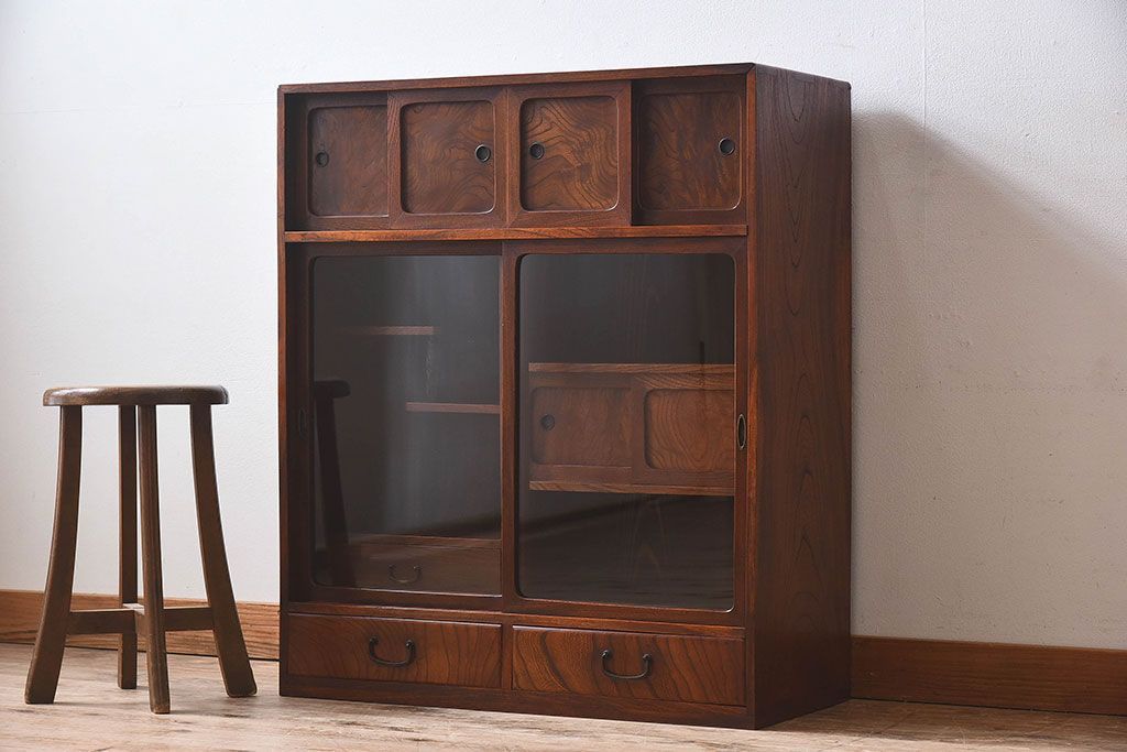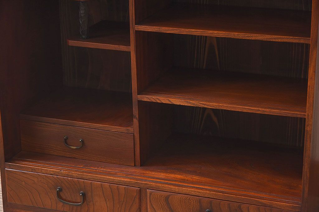 アンティーク家具 和製アンティーク 上手物!三方ケヤキ材の上質な茶箪笥(収納棚、茶棚、戸棚)
