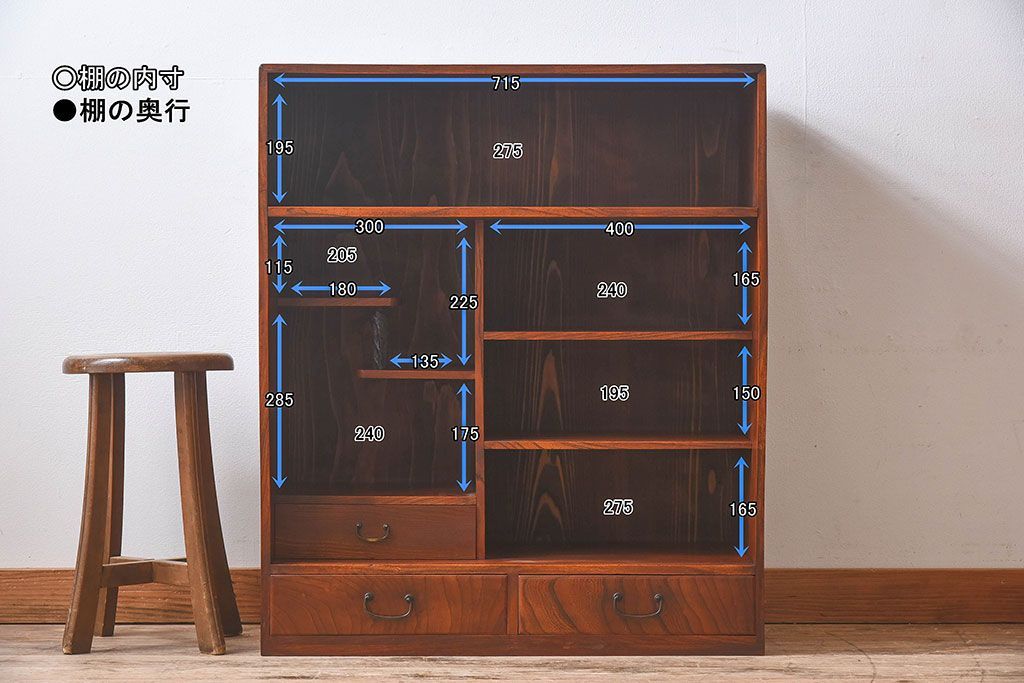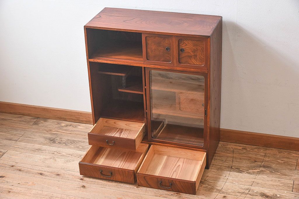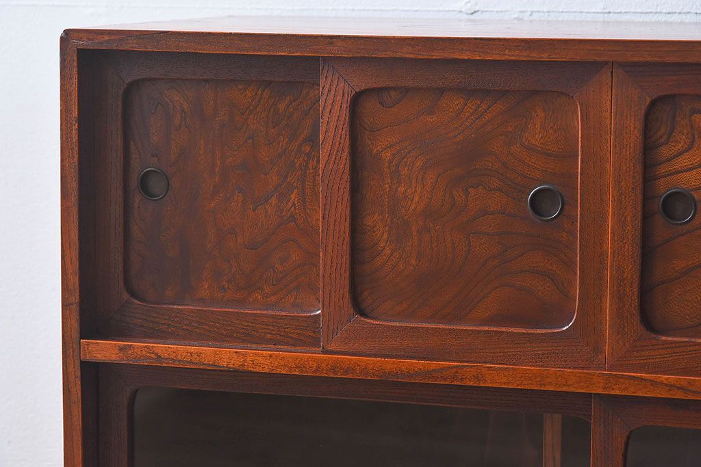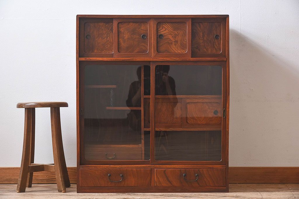 ラフジュ工房> キャビネット・戸棚> 食器棚・カップボード > アンティーク家具 和製アンティーク 上手物!三方ケヤキ材の上質な茶箪笥(収納棚、茶棚、戸棚)