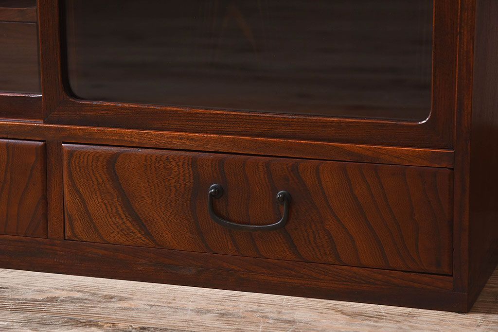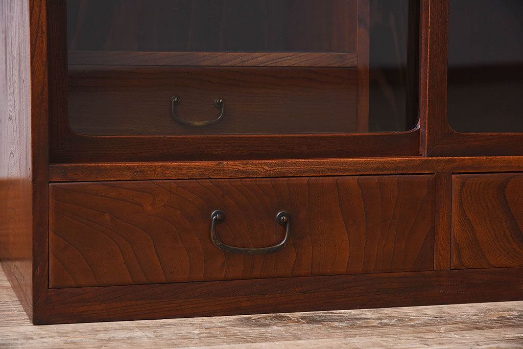 ラフジュ工房> 和箪笥> 茶箪笥・茶棚 > アンティーク家具 和製アンティーク 上手物!三方ケヤキ材の上質な茶箪笥(収納棚、茶棚、戸棚)