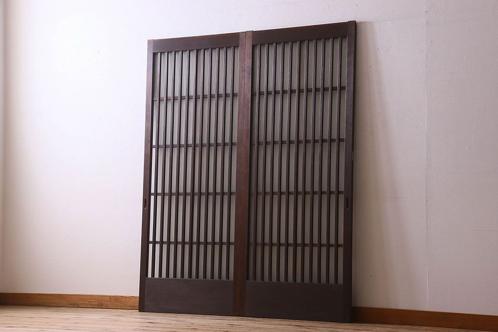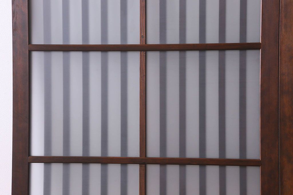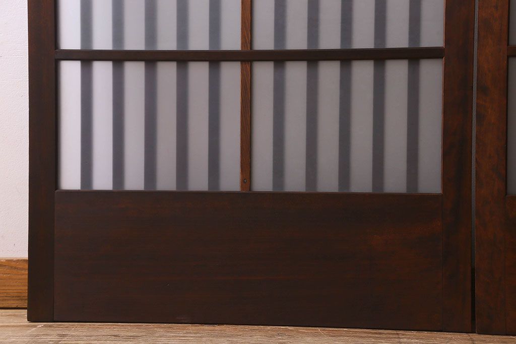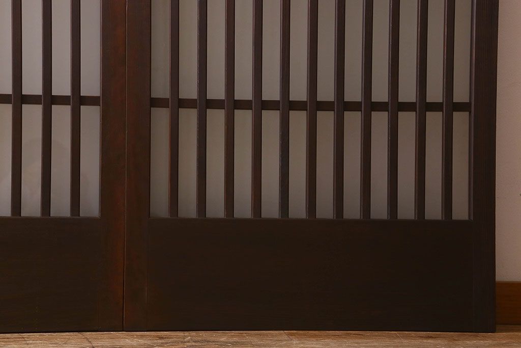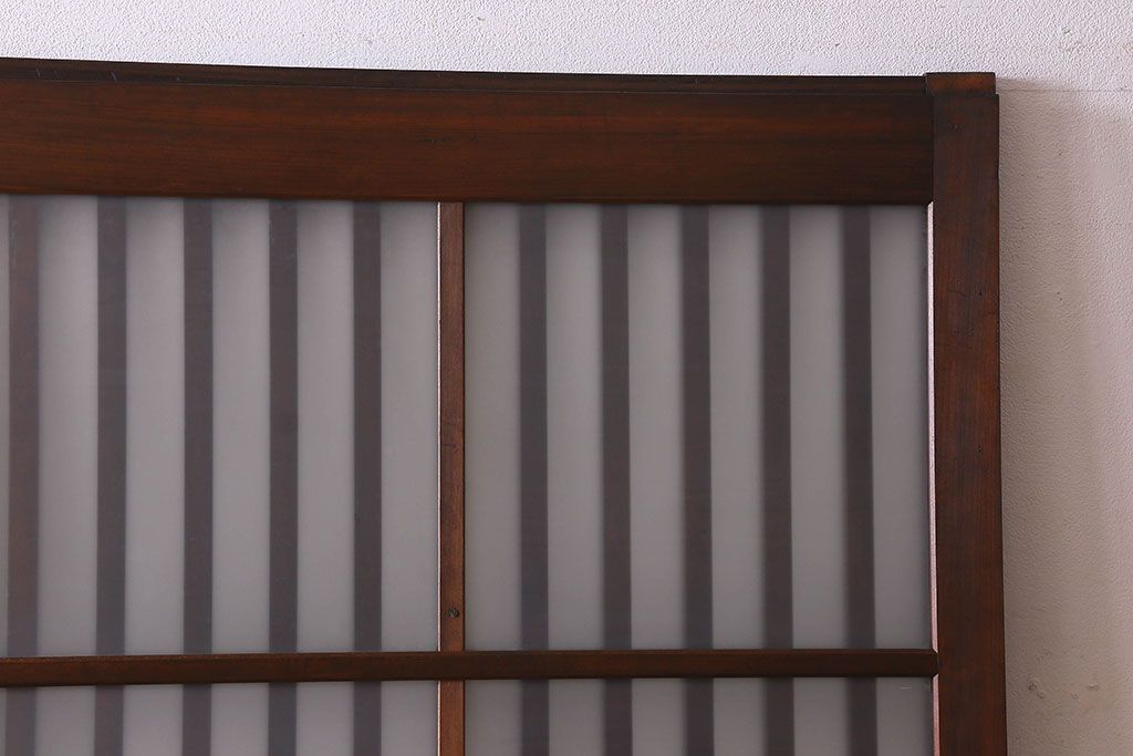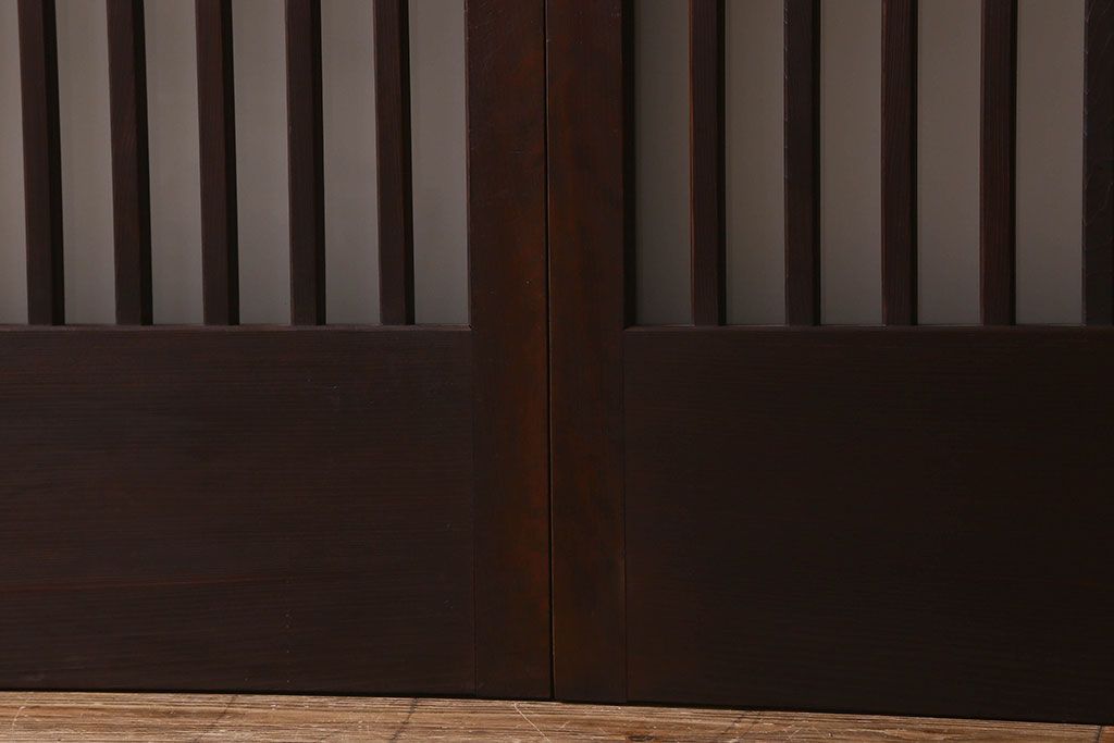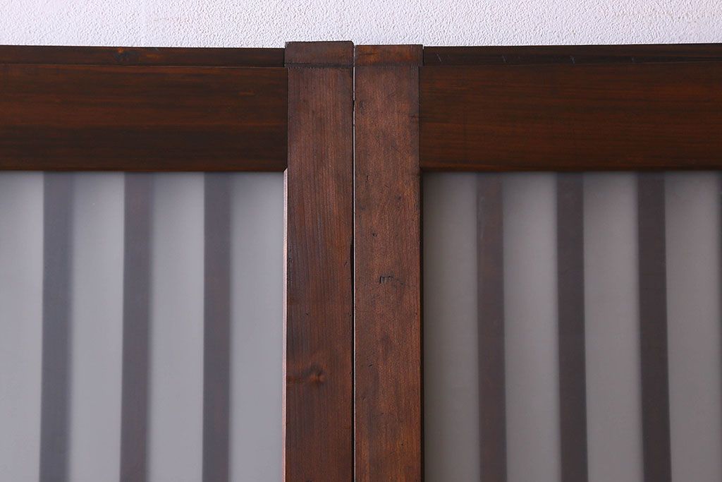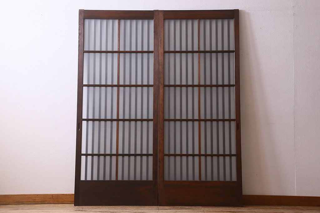 昭和期 すりガラス入り!縦桟が魅力的な格子戸(引き戸、ガラス戸)2枚セット(1)