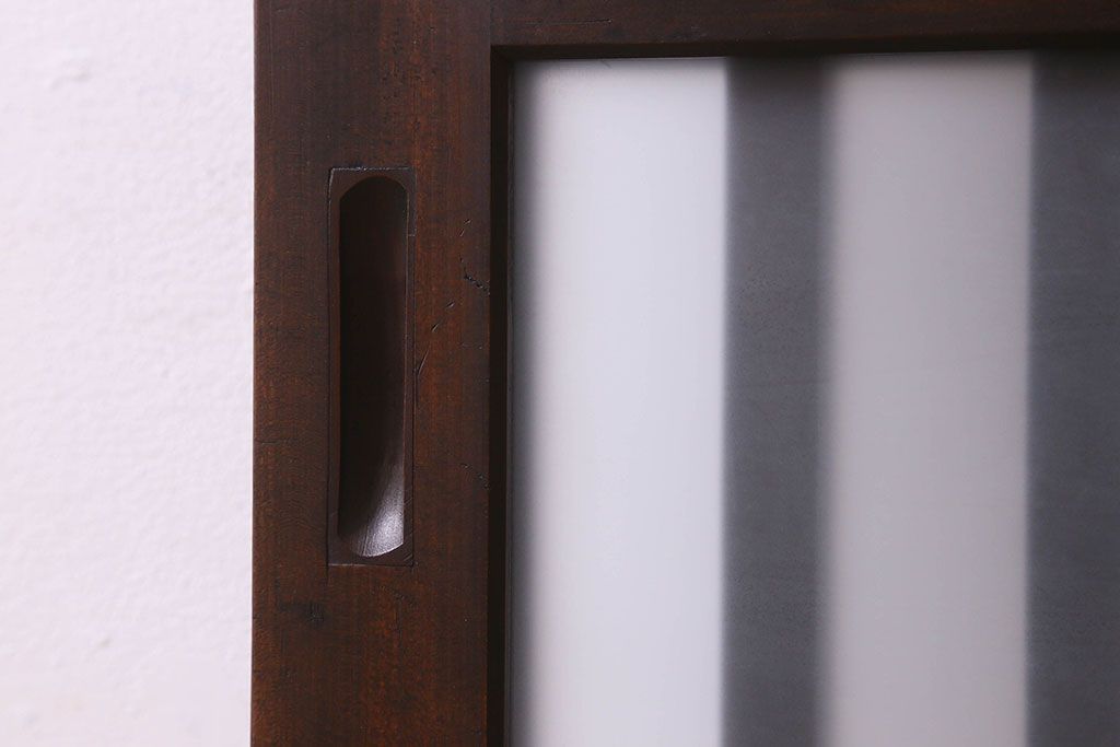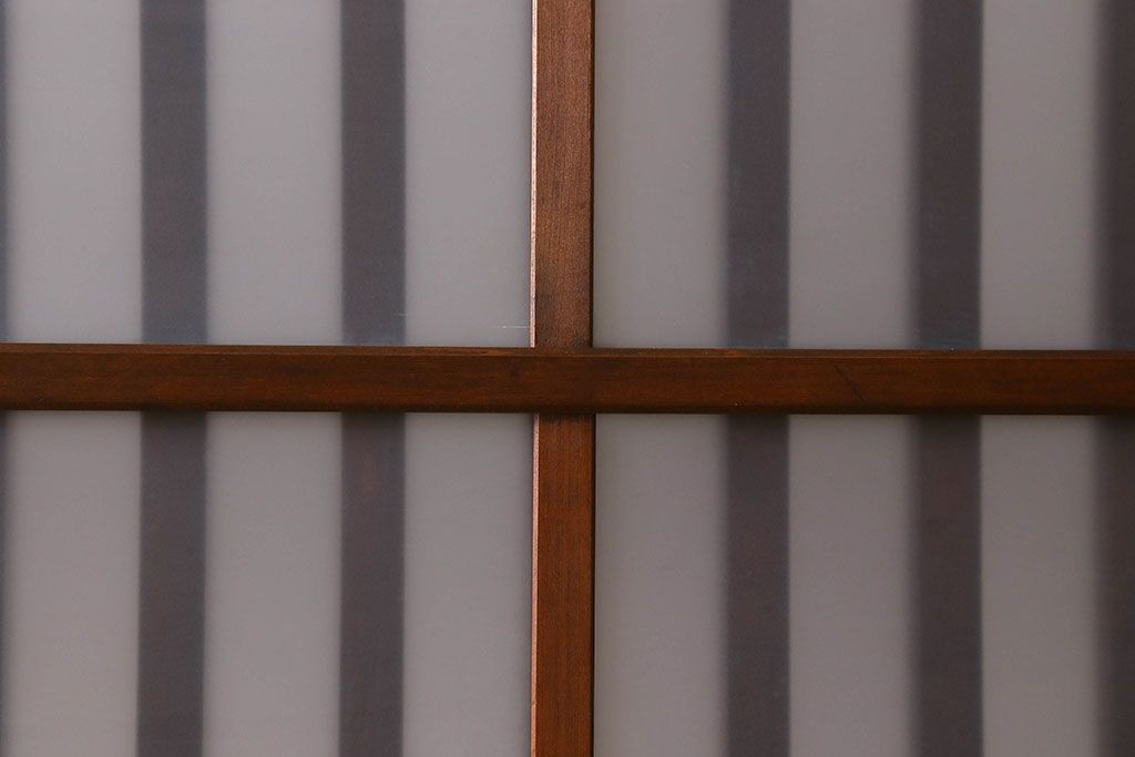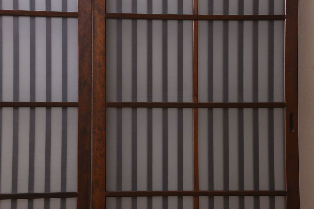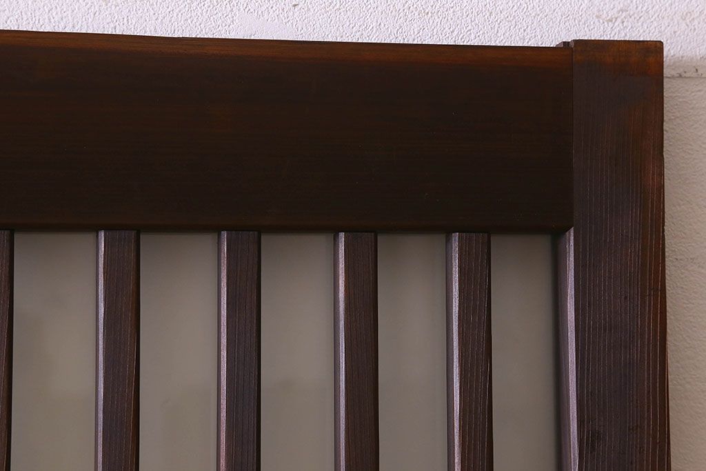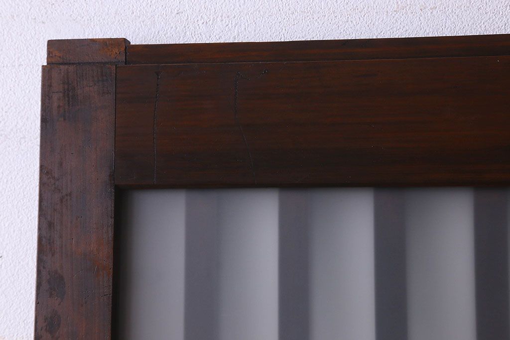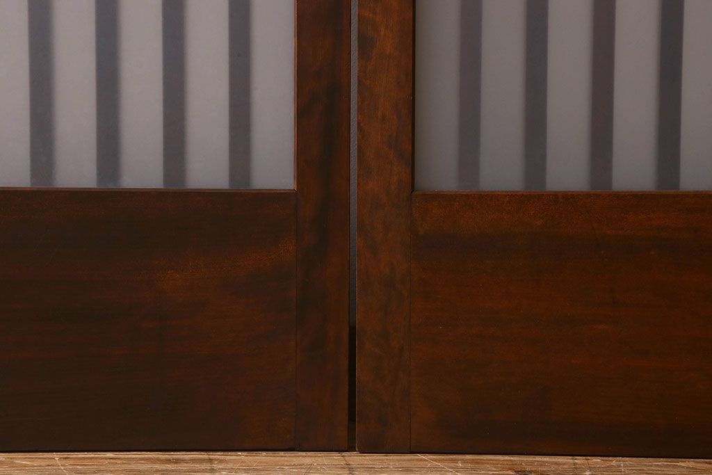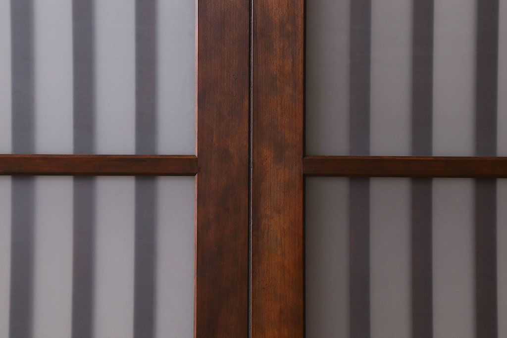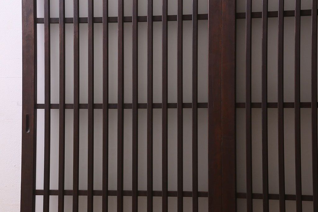 昭和期 すりガラス入り!縦桟が魅力的な格子戸(引き戸、ガラス戸)2枚セット(1)