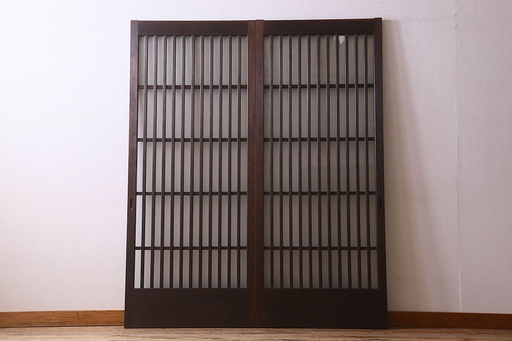 檜材でつくられた昭和期の格子戸2枚セットです。