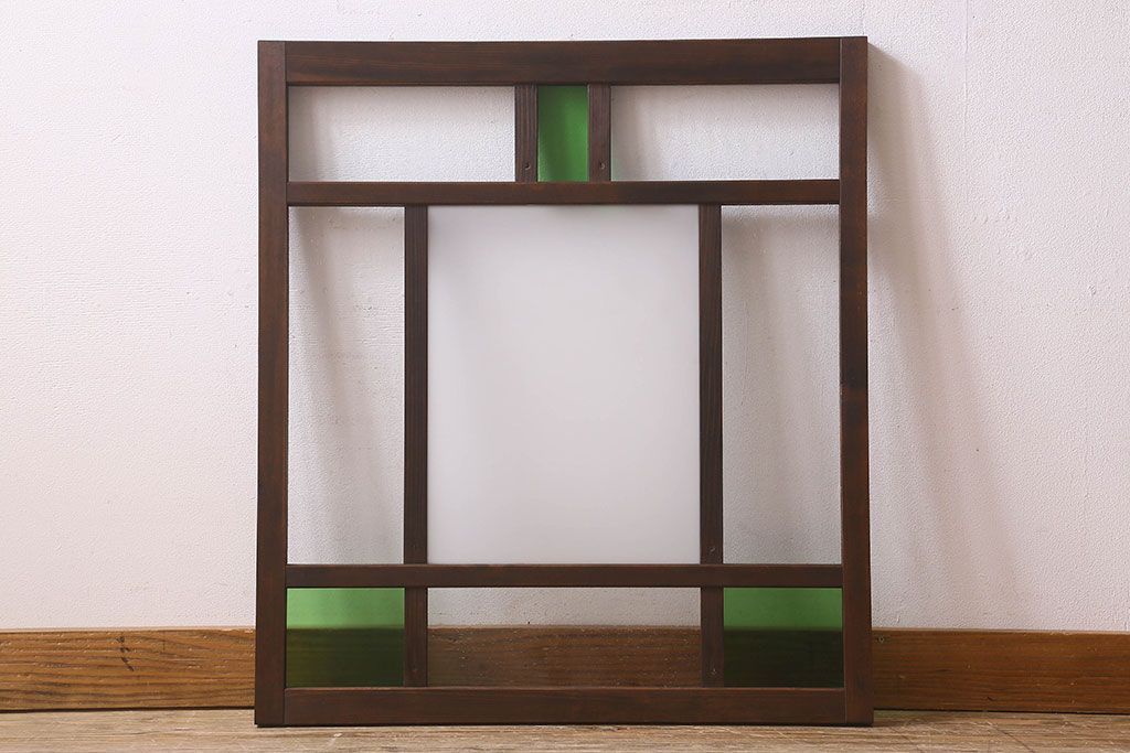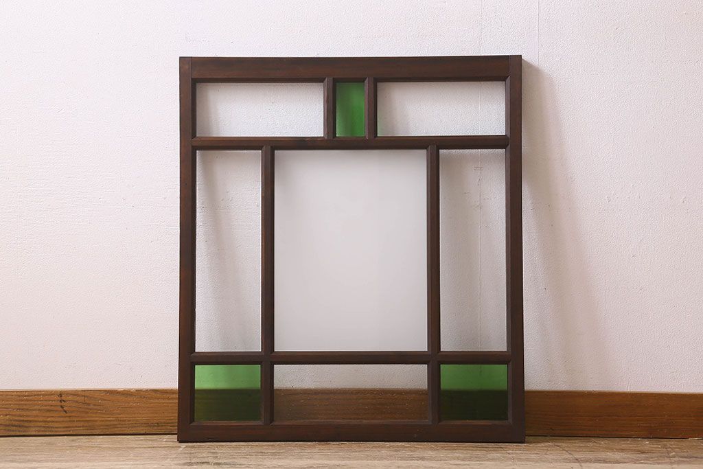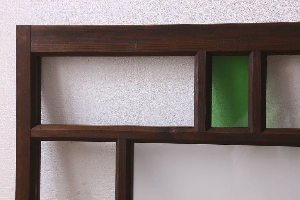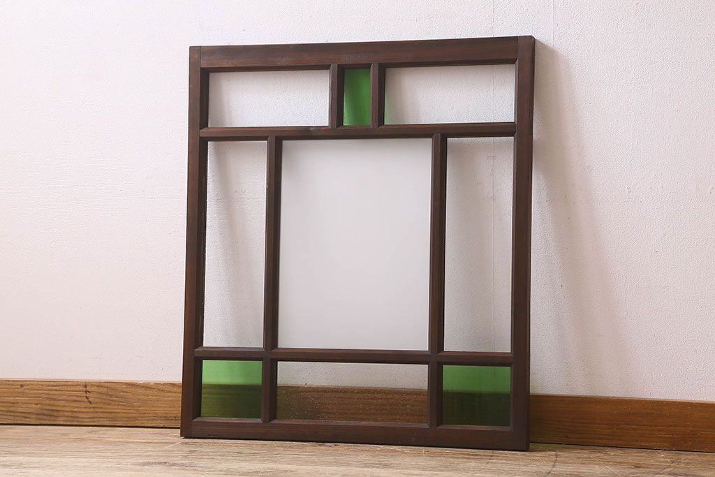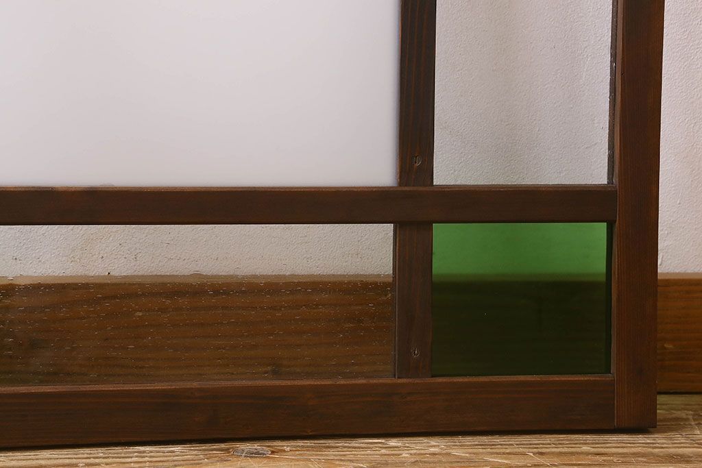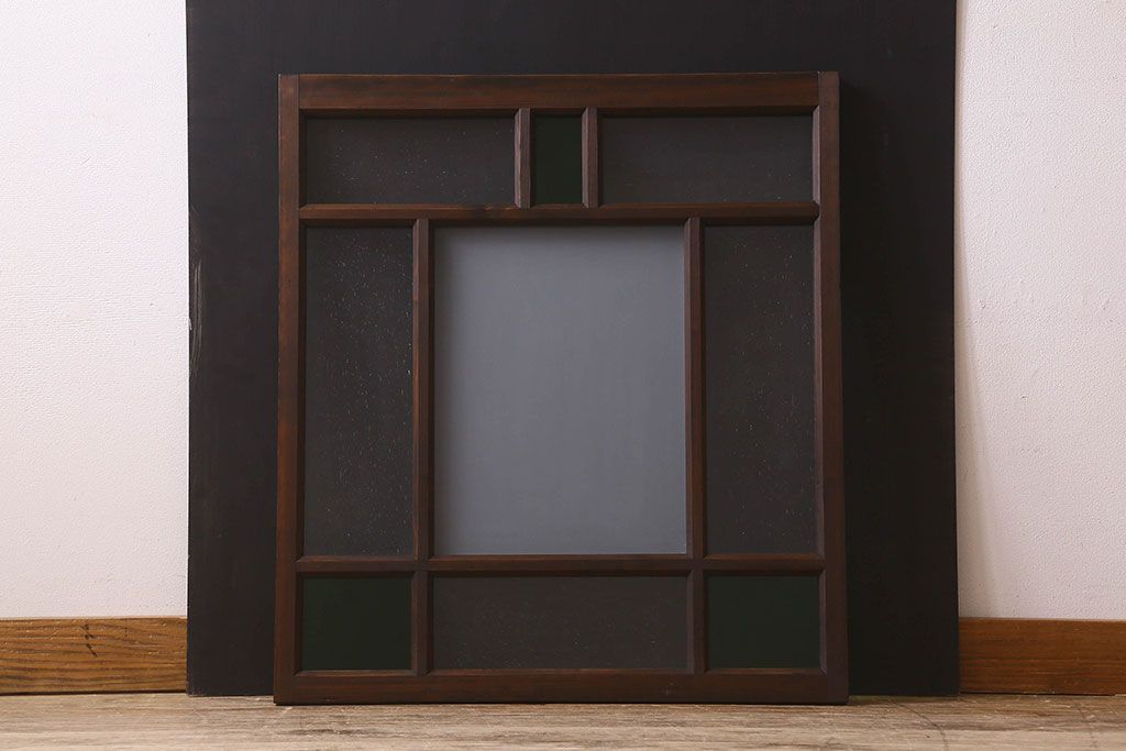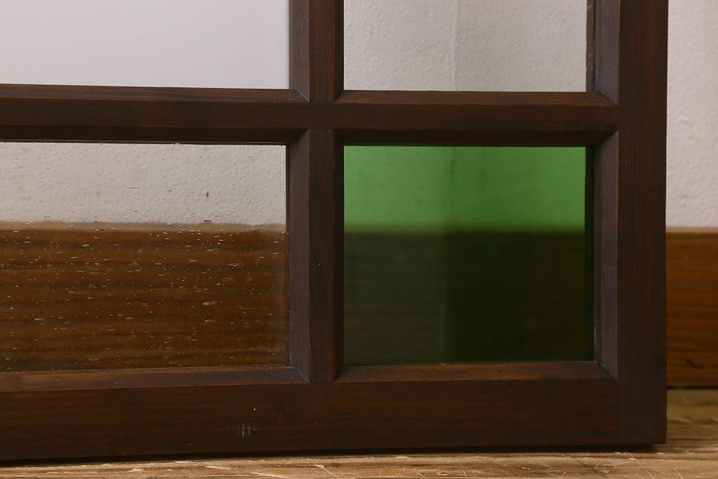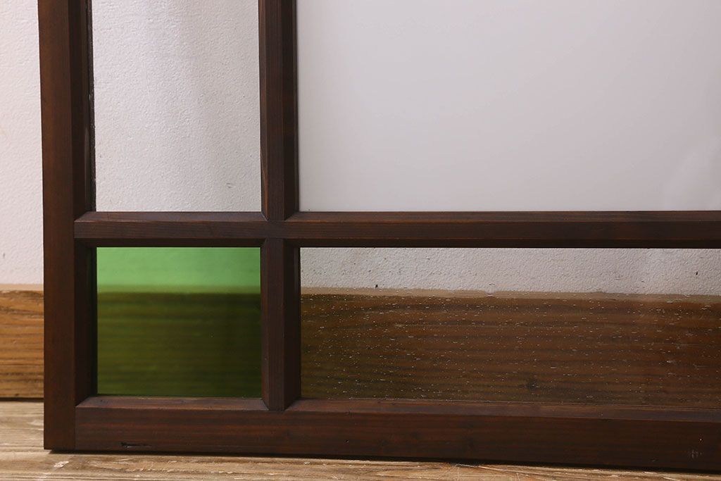ラフジュ工房> ドア・建具> 明り取り・欄間 > 和製アンティーク すりガラスと気泡ガラス入りのガラス戸(フィックス窓、明り取り、明かり取り、はめ殺し戸)(2)