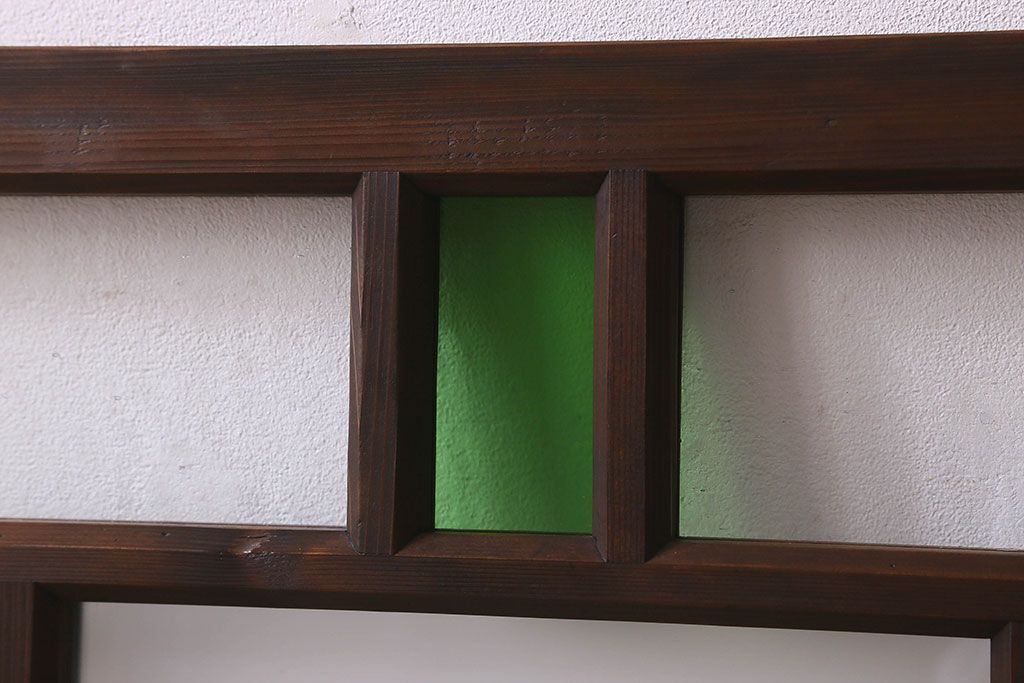 ラフジュ工房> 衝立・パーテーション > 和製アンティーク すりガラスと気泡ガラス入りのガラス戸(フィックス窓、明り取り、明かり取り、はめ殺し戸)(2)