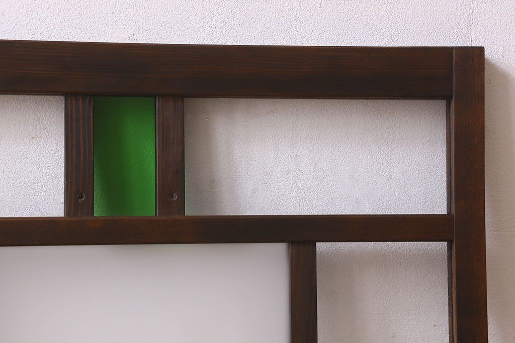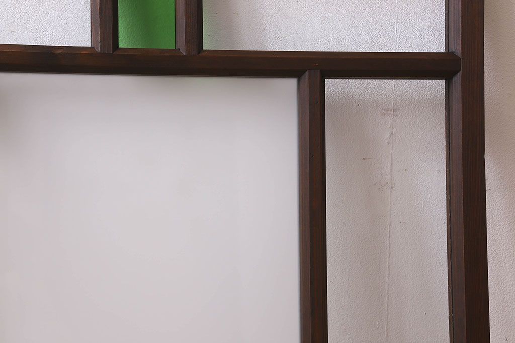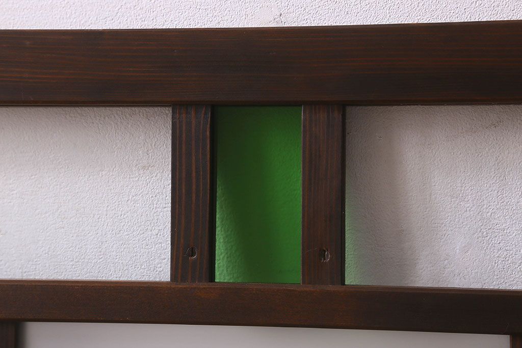 ラフジュ工房> 衝立・パーテーション> スタンド式衝立 > 和製アンティーク すりガラスと気泡ガラス入りのガラス戸(フィックス窓、明り取り、明かり取り、はめ殺し戸)(2)