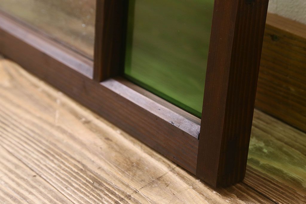 和製アンティーク すりガラスと気泡ガラス入りのガラス戸(フィックス窓、明り取り、明かり取り、はめ殺し戸)(2)