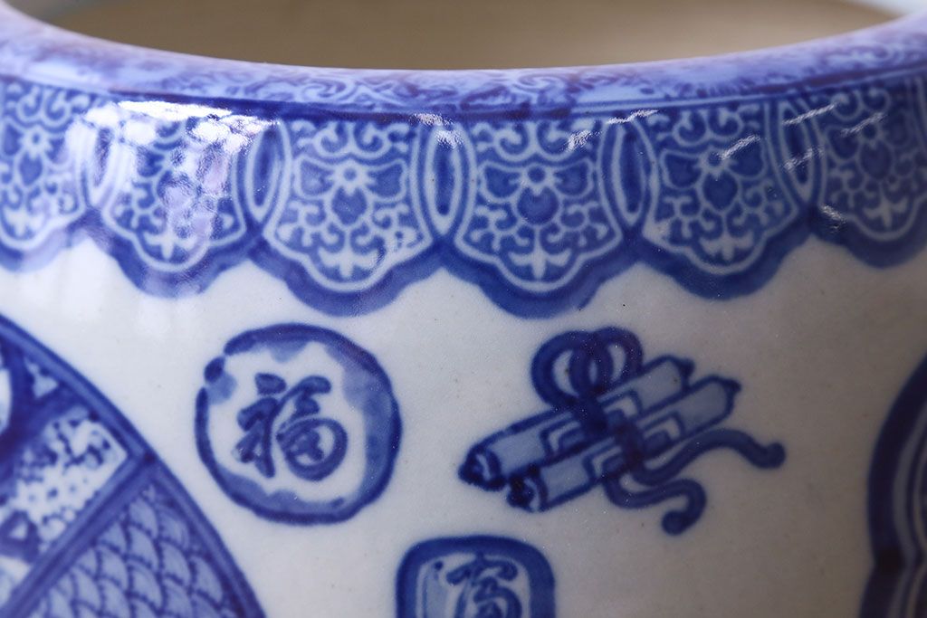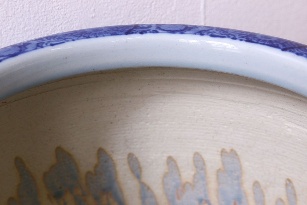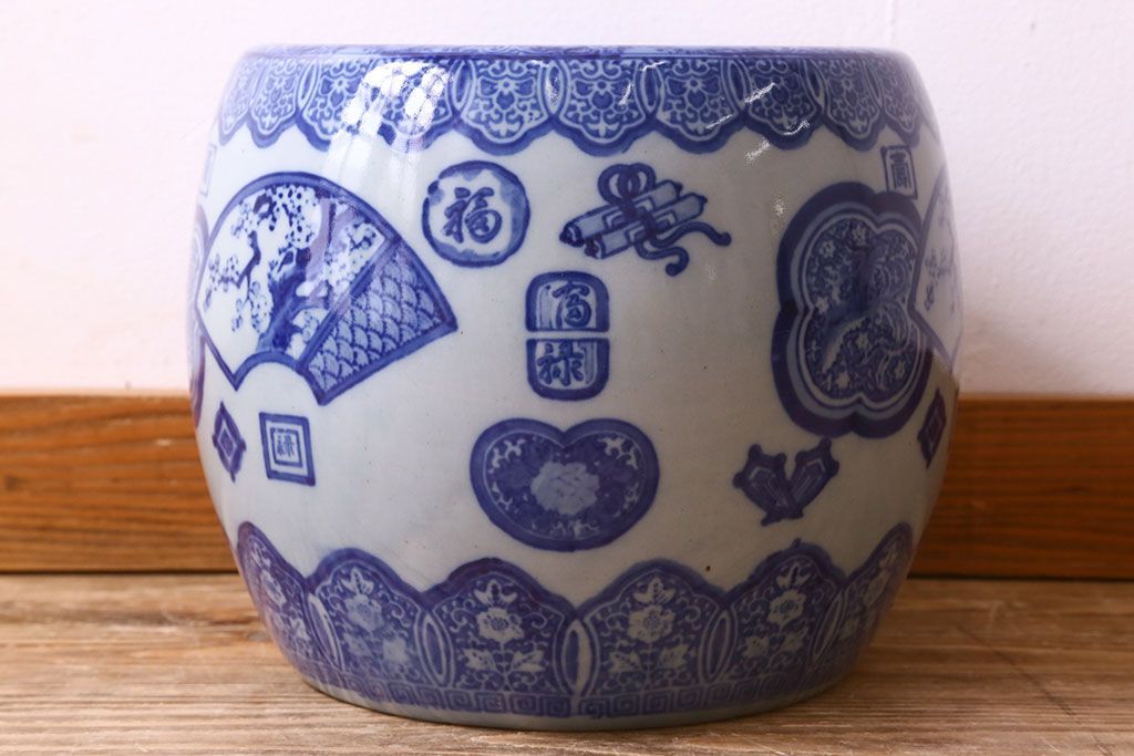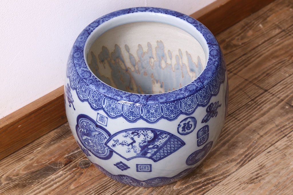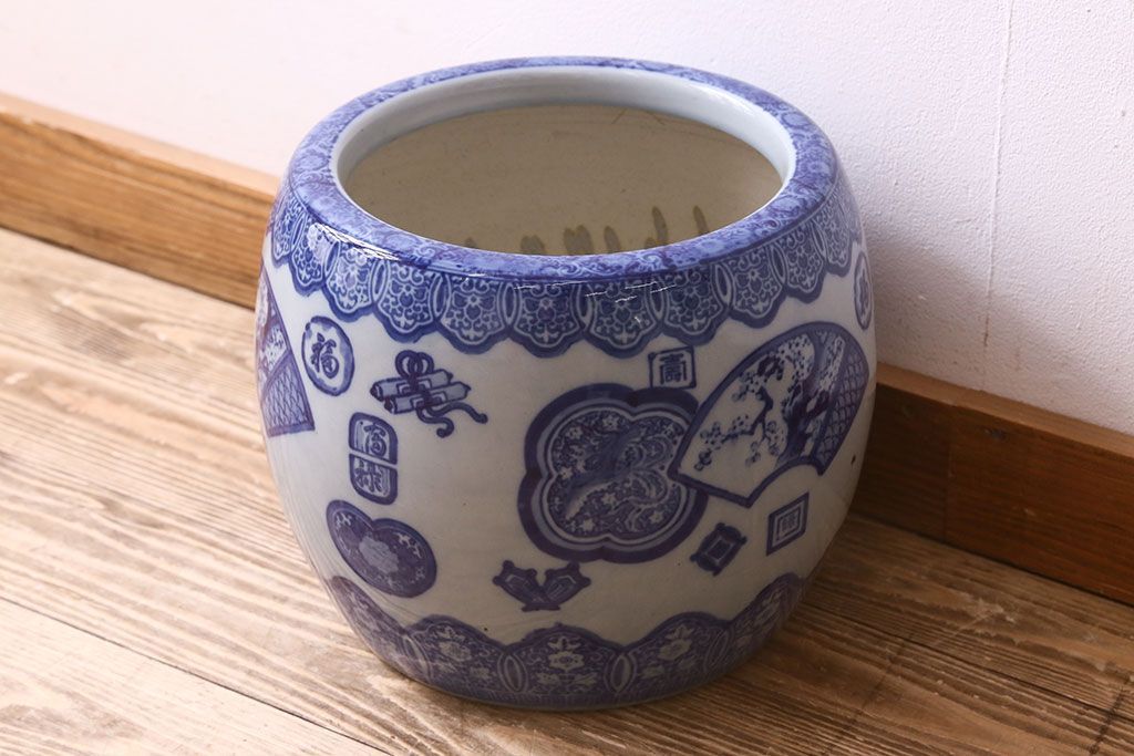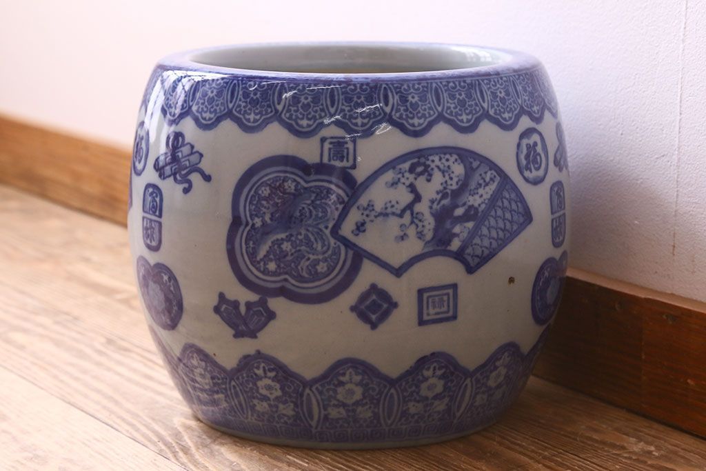 和製アンティーク 窓絵 懐かしさ漂う図柄が素敵な瀬戸火鉢(鉢カバー)です。