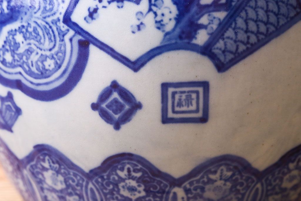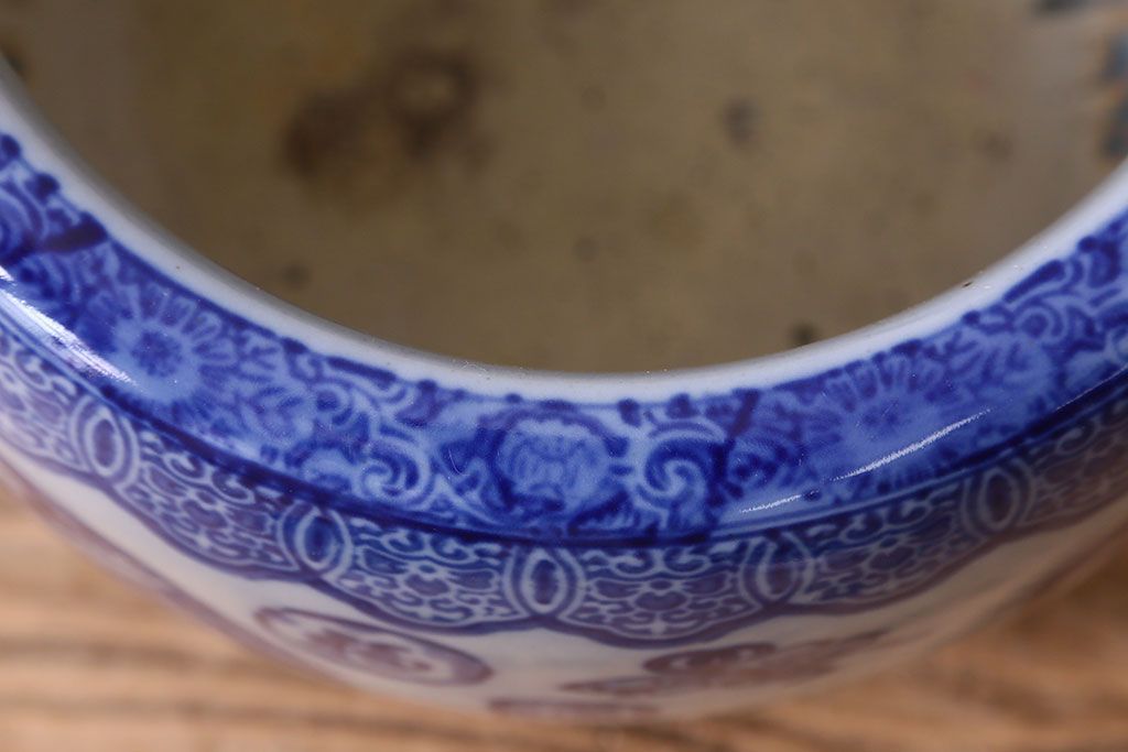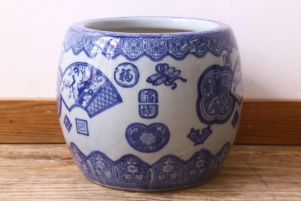 アンティーク雑貨 和製アンティーク 窓絵 懐かしさ漂う図柄が素敵な瀬戸火鉢(鉢カバー)