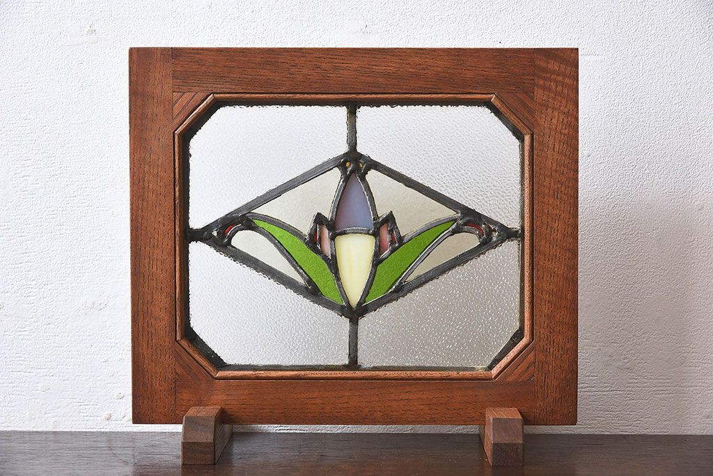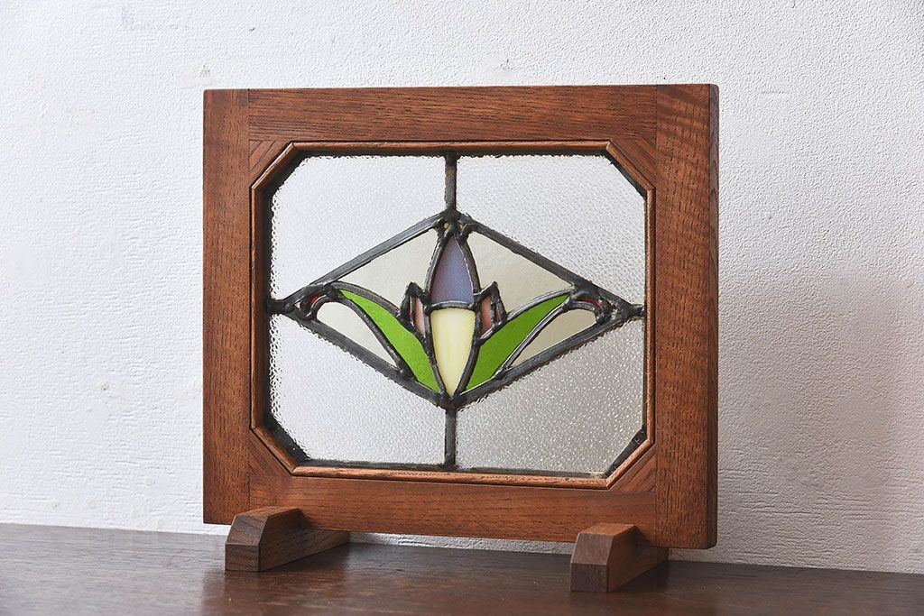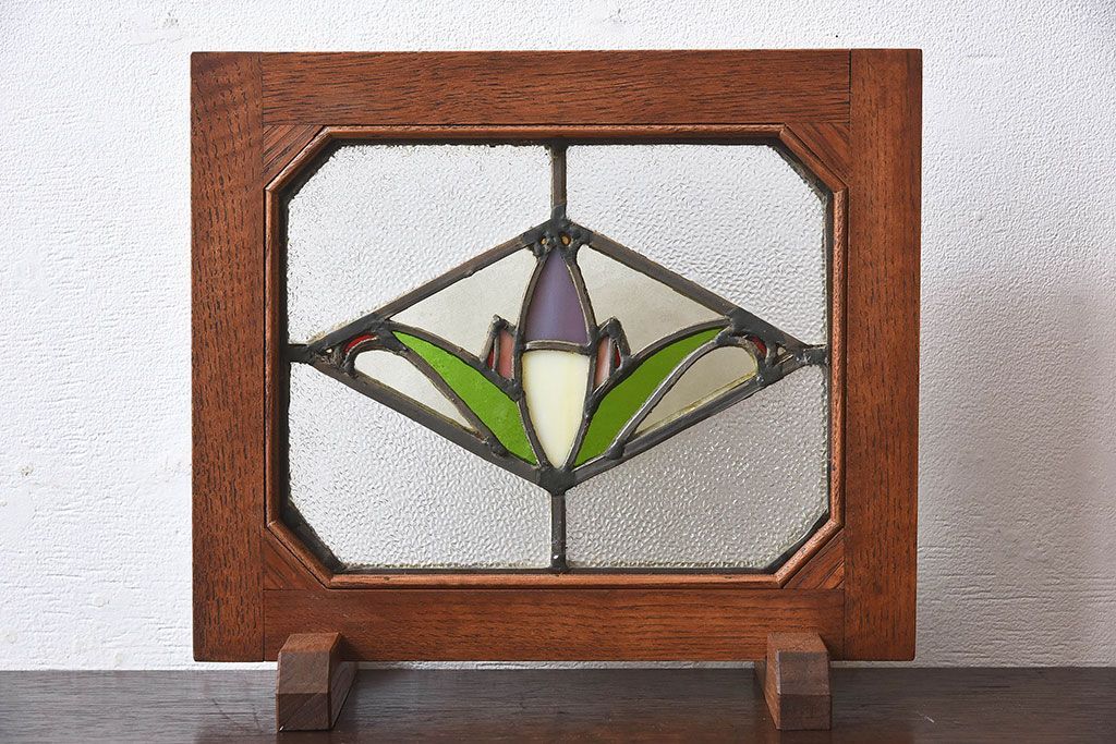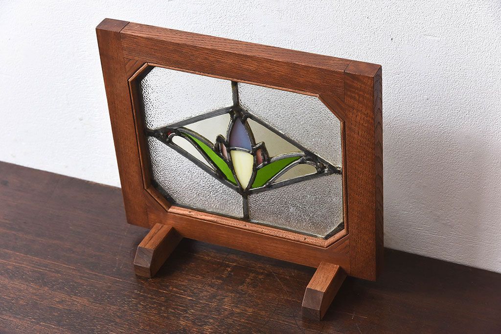 アンティーク雑貨 和製アンティーク 上品なデザインが魅力的なステンドグラス(衝立、ディスプレイ雑貨)(1)