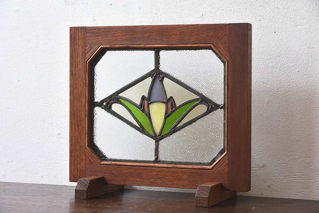 アンティーク雑貨 和製アンティーク 上品なデザインが魅力的なステンドグラス(衝立、ディスプレイ雑貨)(2)