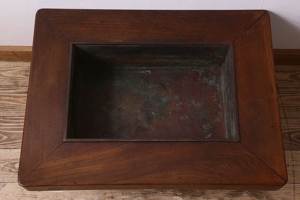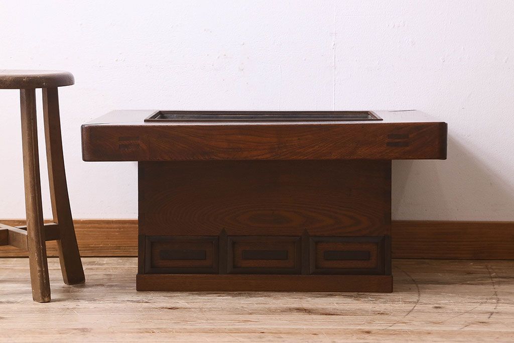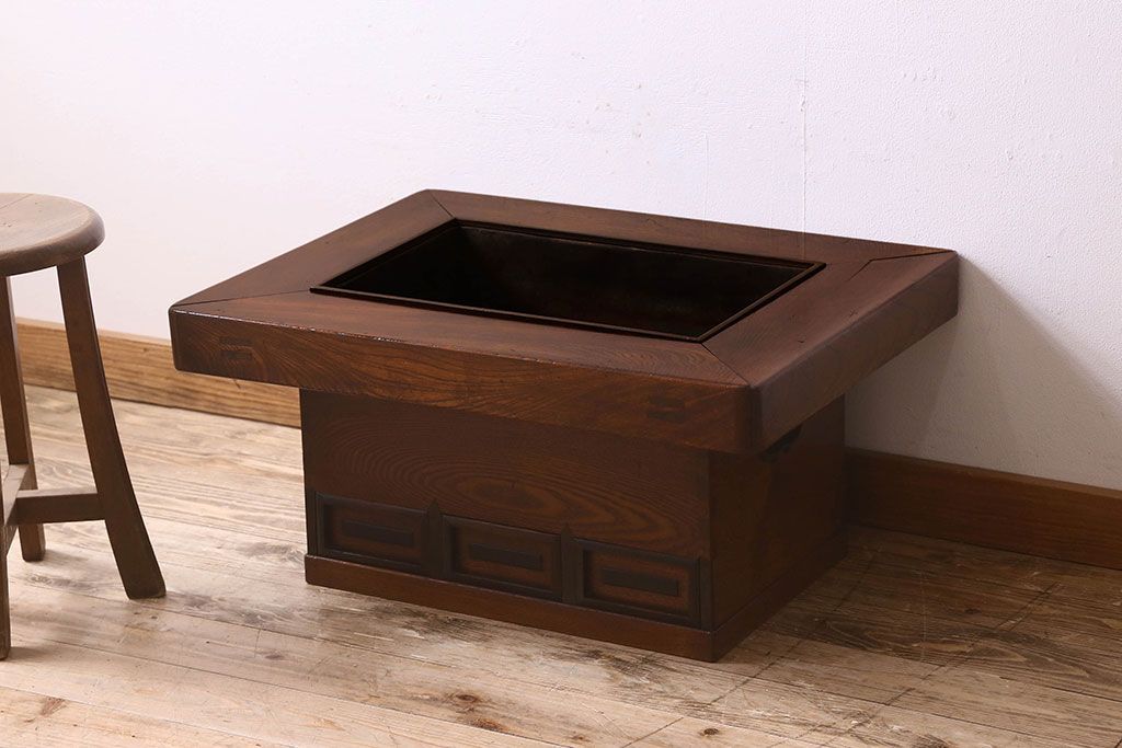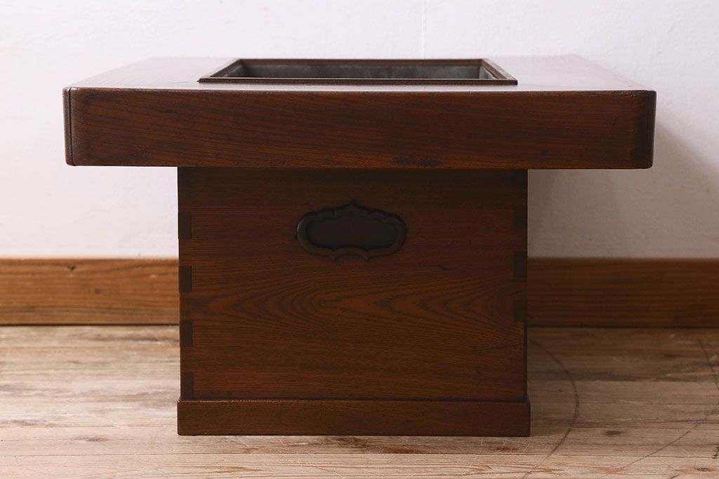 ラフジュ工房> 火鉢> 木製火鉢 > アンティーク雑貨 和製アンティーク 総欅材!意匠や立派な天板が魅力的な関西火鉢(長火鉢)