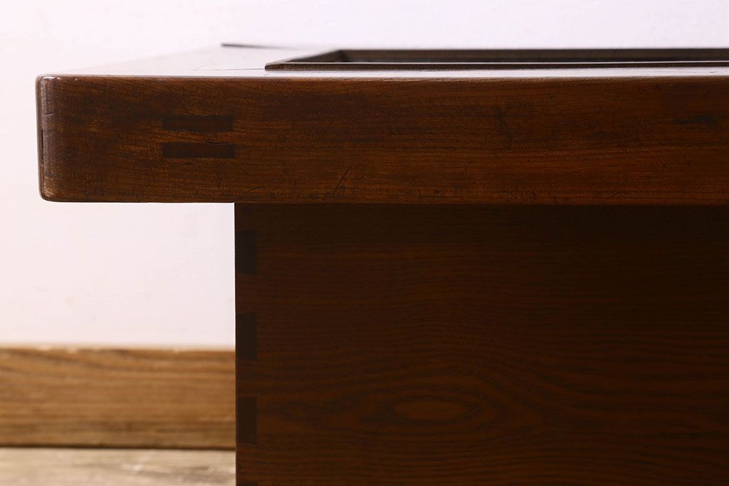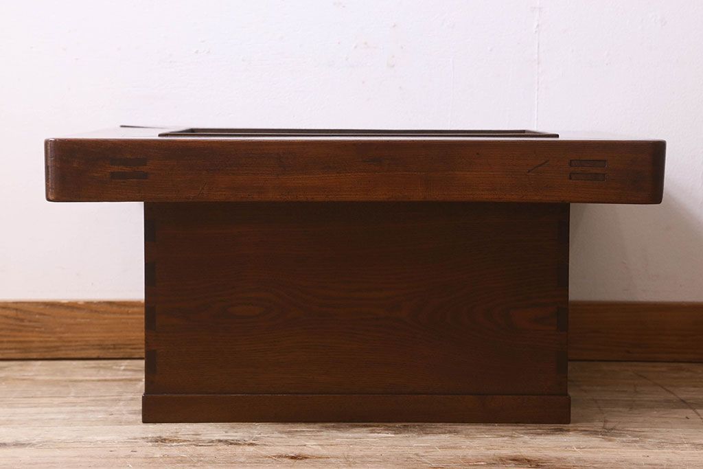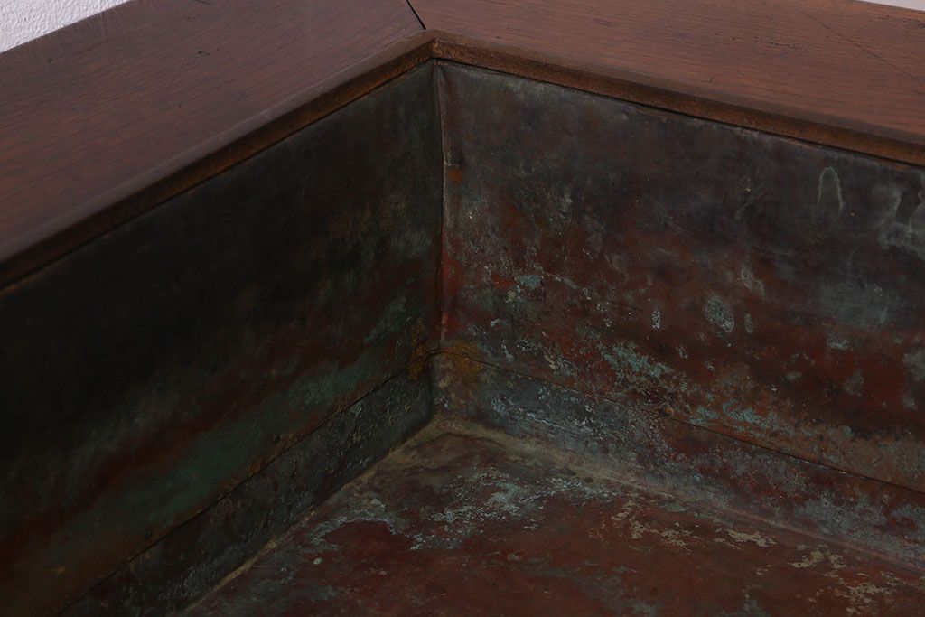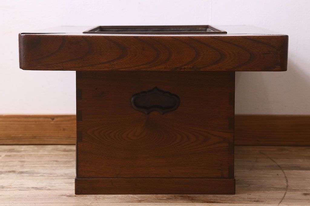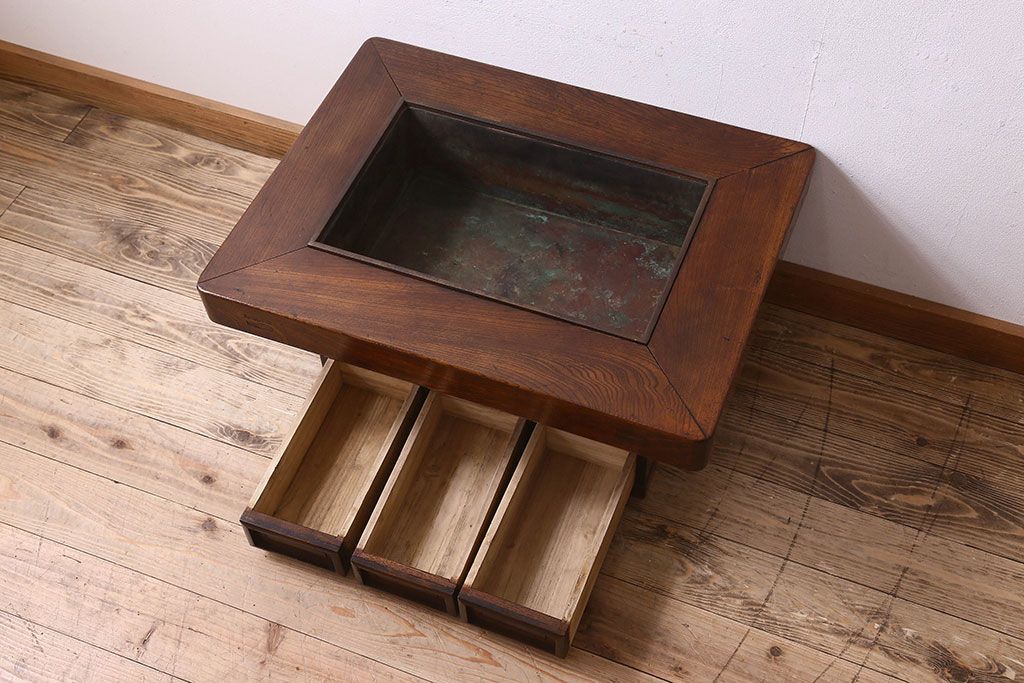 ラフジュ工房> 火鉢> 木製火鉢 > アンティーク雑貨 和製アンティーク 総欅材!意匠や立派な天板が魅力的な関西火鉢(長火鉢)