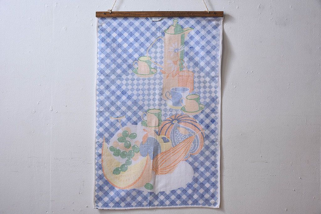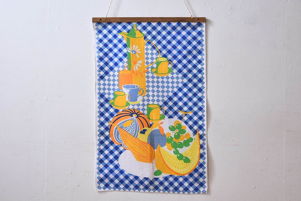 アンティーク雑貨 ハンガリー製 BDUAPRINT 色と絵が可愛らしいタペストリー(布)