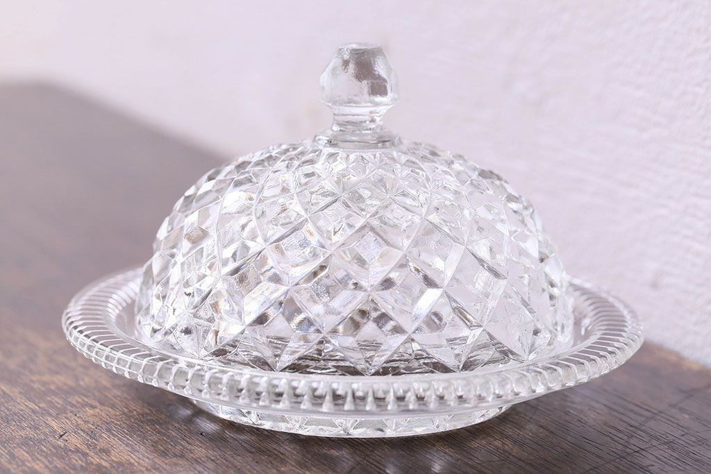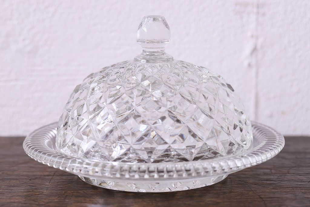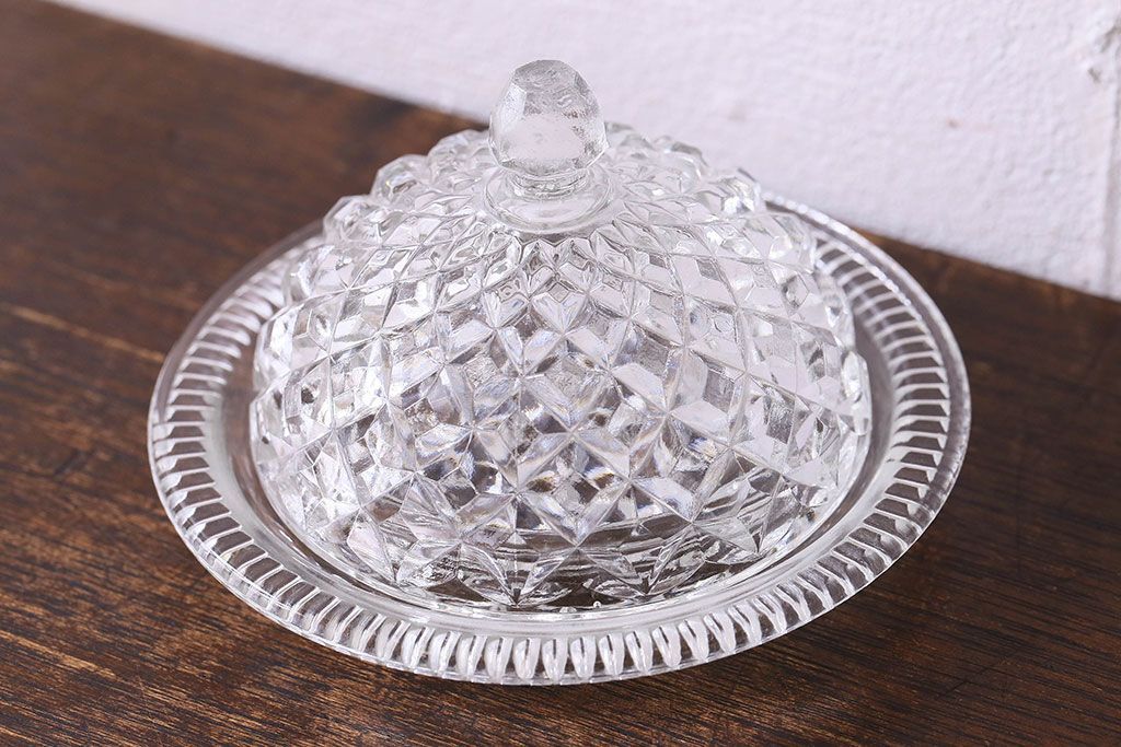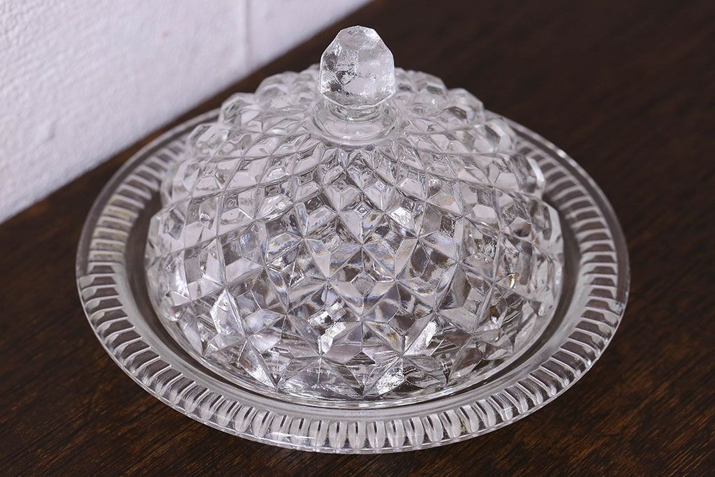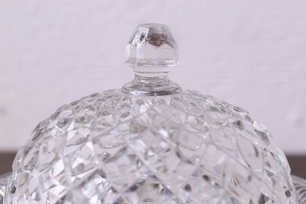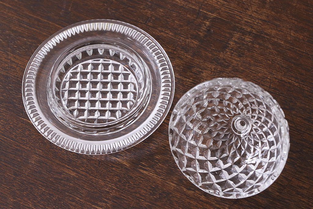 アンティーク雑貨 イギリスビンテージ 華やかなデザインの蓋付き小物入れ(プレスガラス、テーブルウェア)