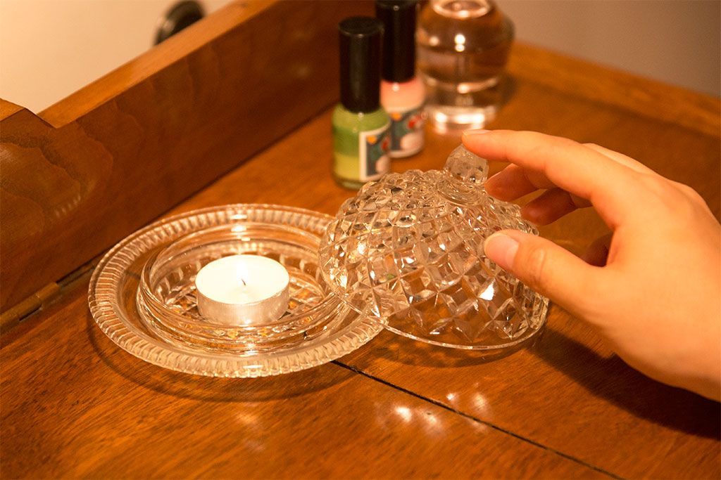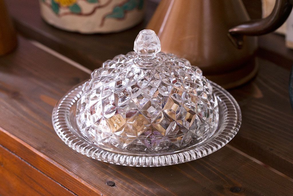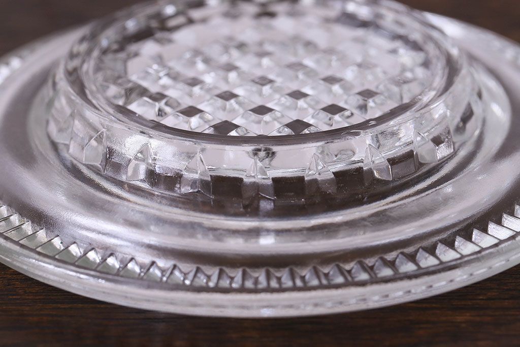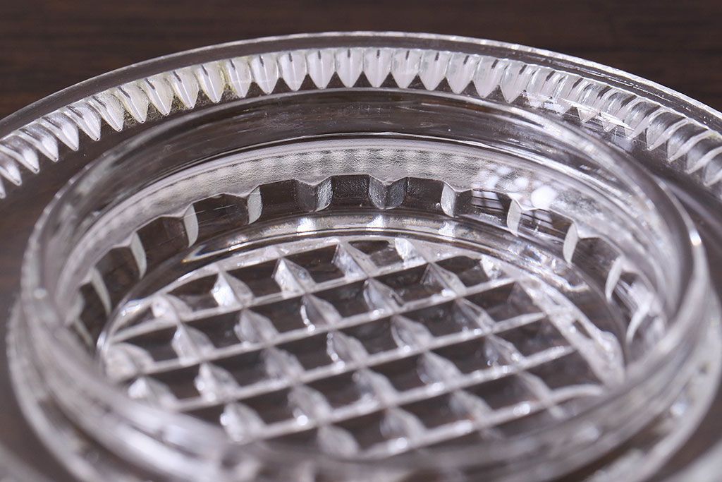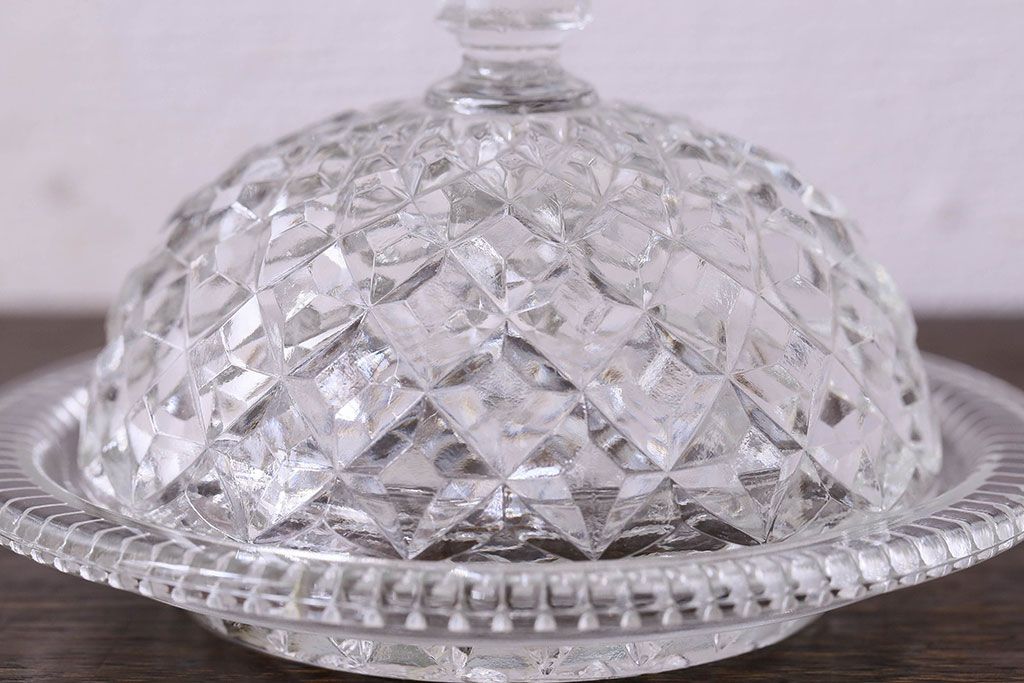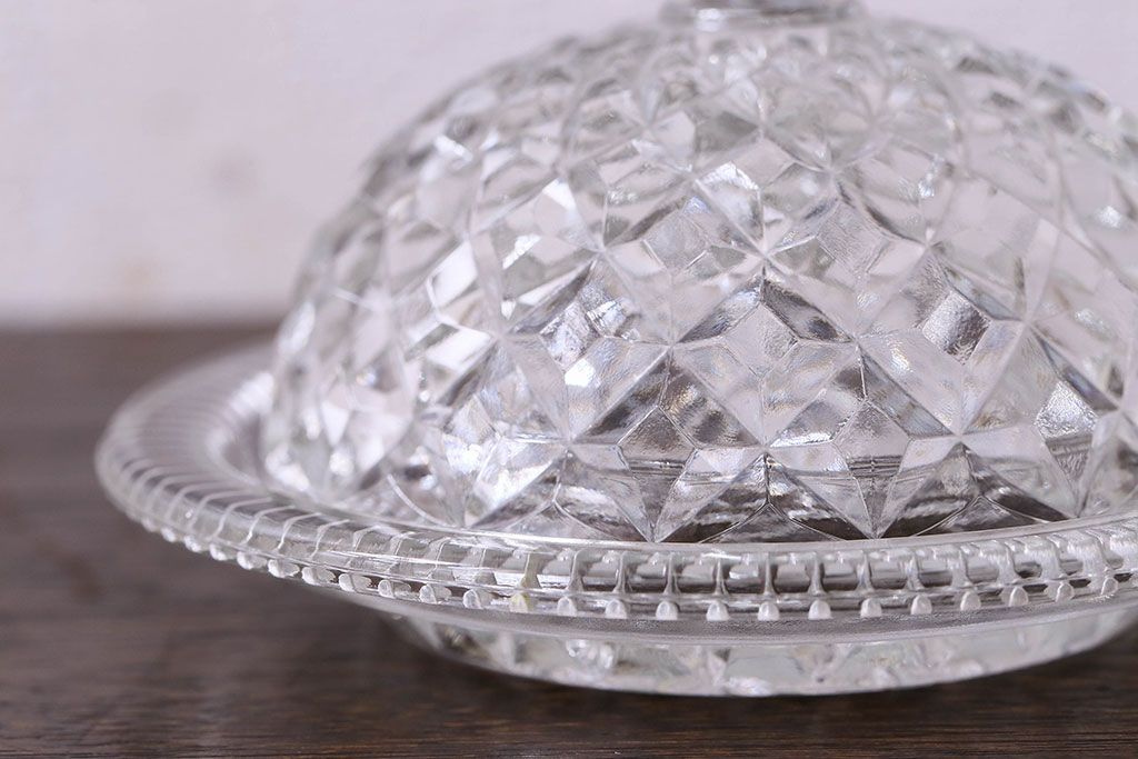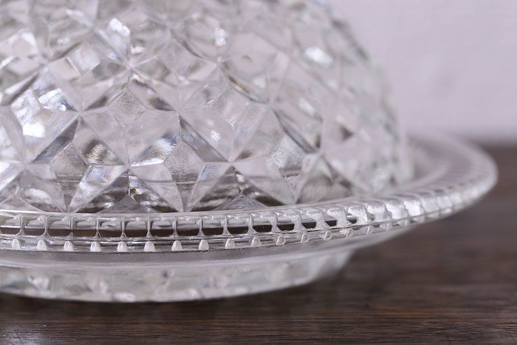アンティーク雑貨 イギリスビンテージ 華やかなデザインの蓋付き小物入れ(プレスガラス、テーブルウェア)