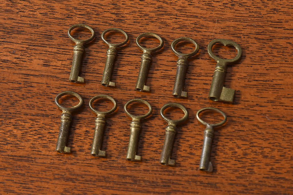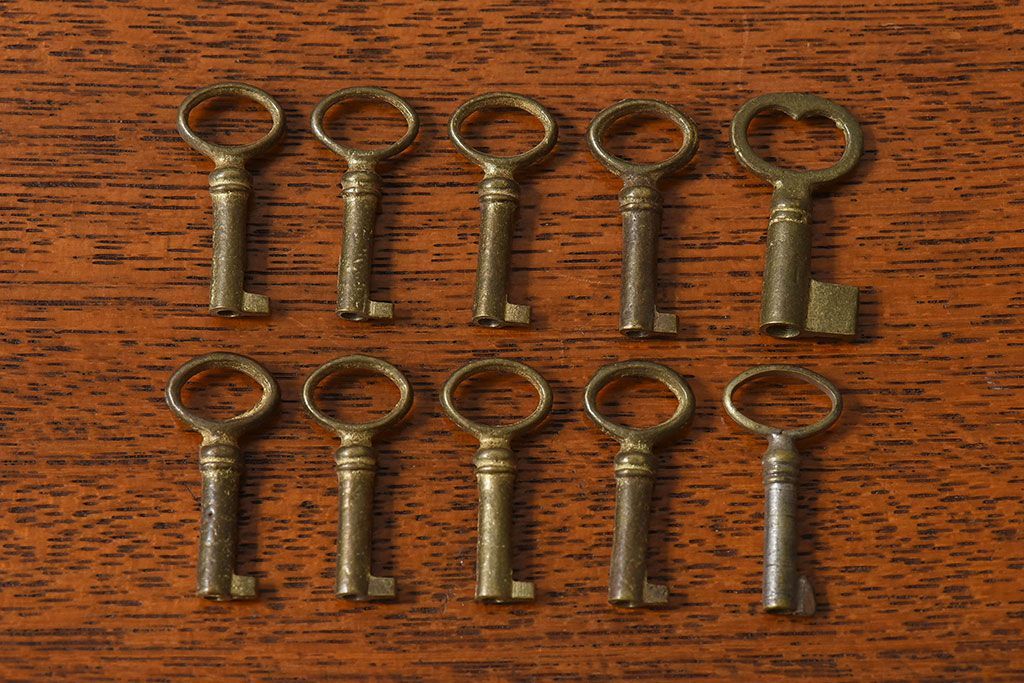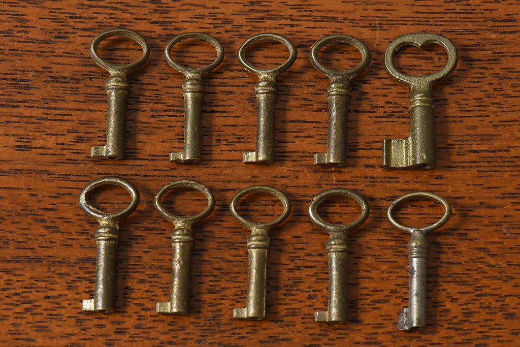アンティーク雑貨 イギリスアンティーク シャビーな雰囲気が魅力的なキー(鍵、カギ)10本セット(1)