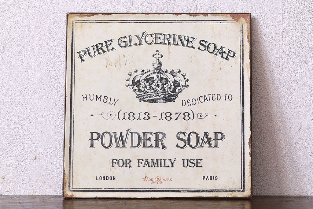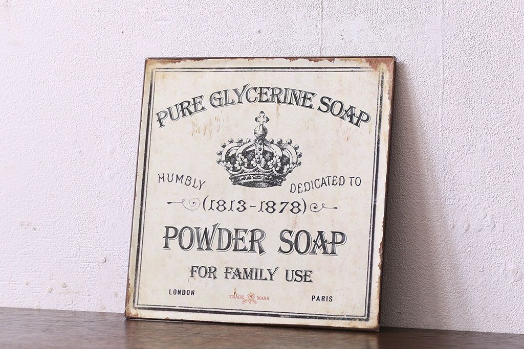 アンティーク雑貨 イギリスビンテージ Metal Bathroom Sign or Plaque Advertising Pure Powder Soap 看板(ディスプレイ雑貨)