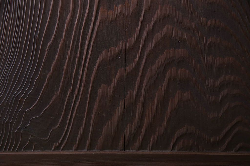 鏡板部分には素晴らしい杢目の杉材一枚板が使われた特注品です。