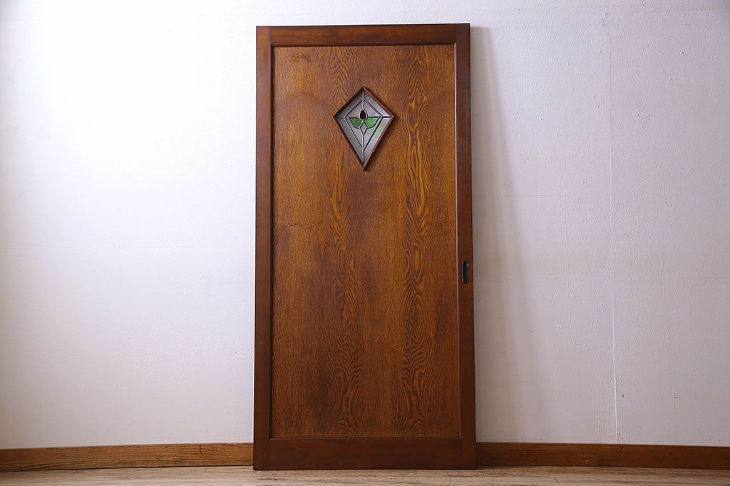 アンティーク雑貨 【U様ご成約済】和製アンティーク ラフジュ工房オリジナルステンドグラス 美しいステンドグラス入り板戸(引き戸、建具)(1)