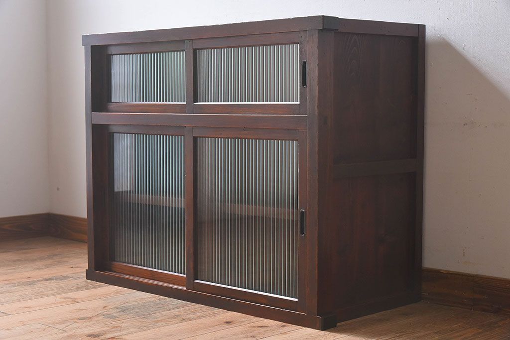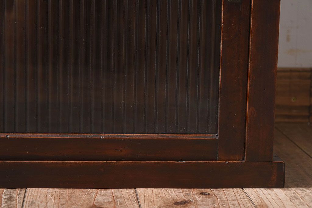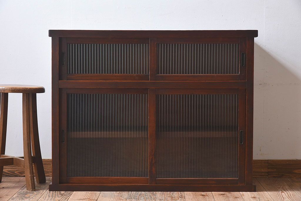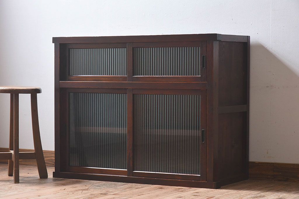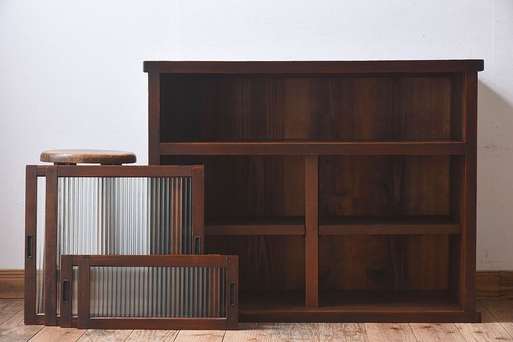 ラフジュ工房> キャビネット・戸棚> 食器棚・カップボード > レトロ家具 和製アンティーク レトロなガラス入り収納棚(戸棚、食器棚、本箱)