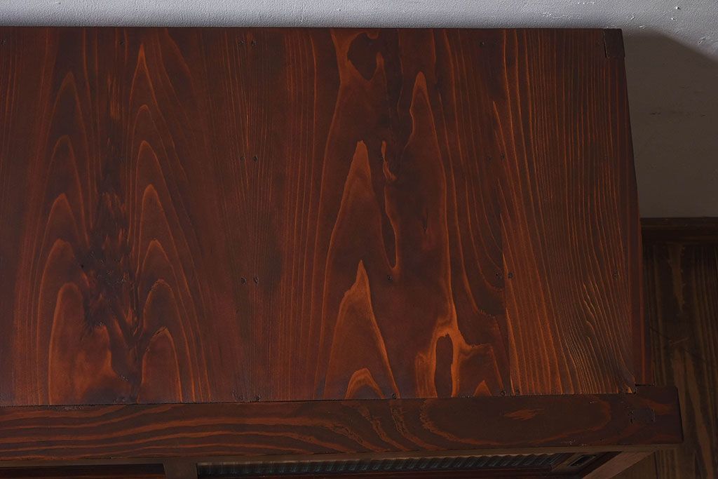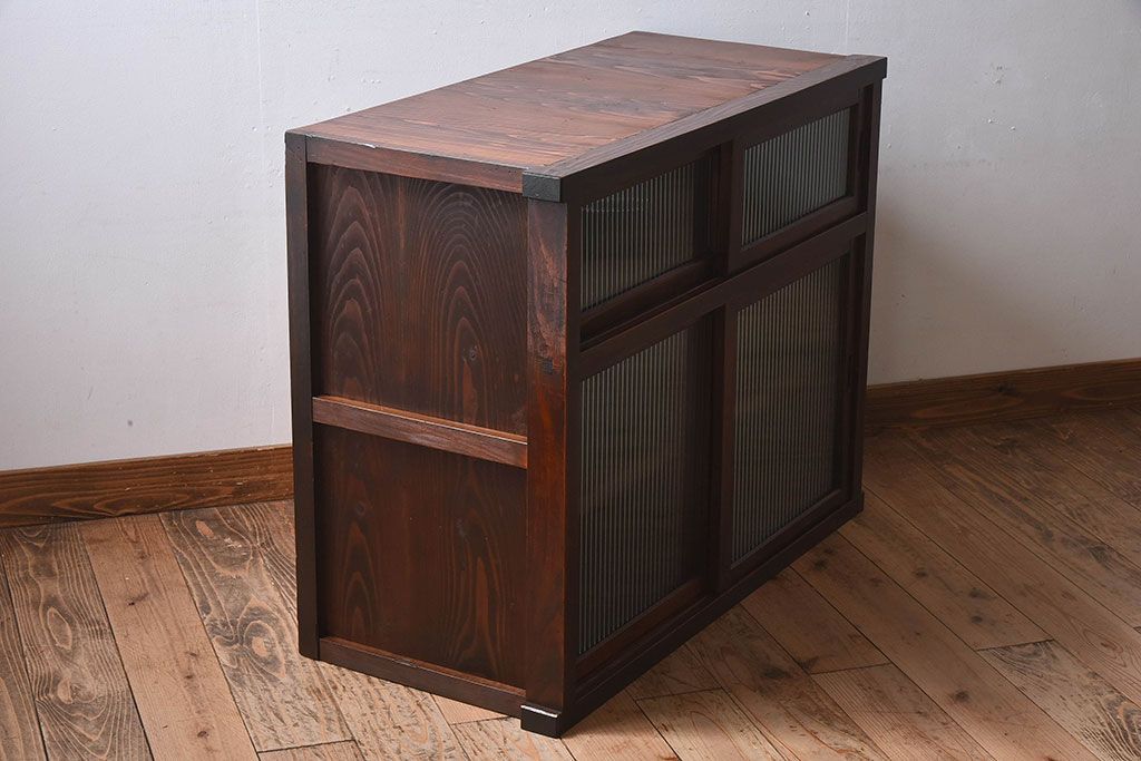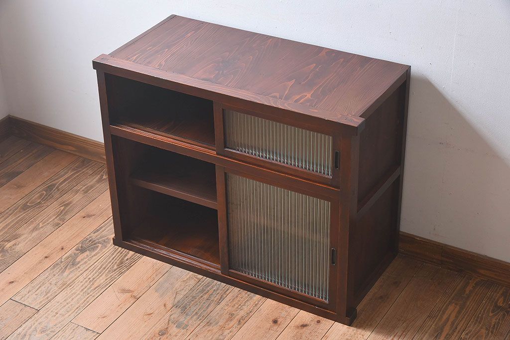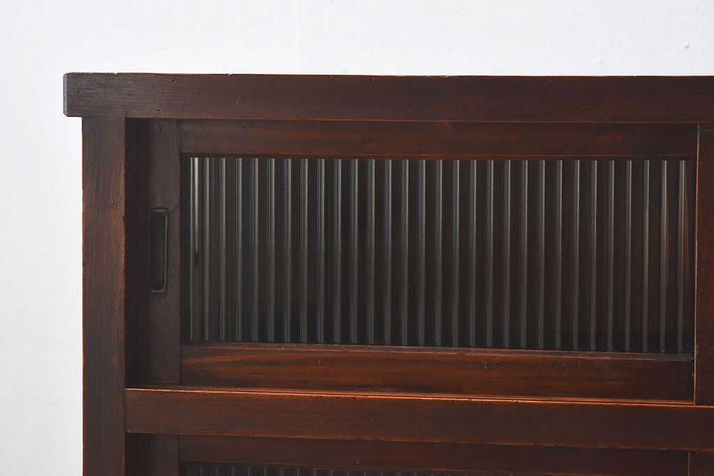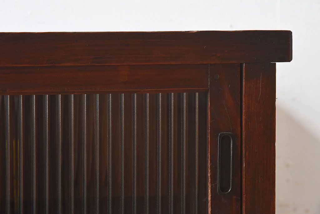 ラフジュ工房> キャビネット・戸棚> 食器棚・カップボード > レトロ家具 和製アンティーク レトロなガラス入り収納棚(戸棚、食器棚、本箱)