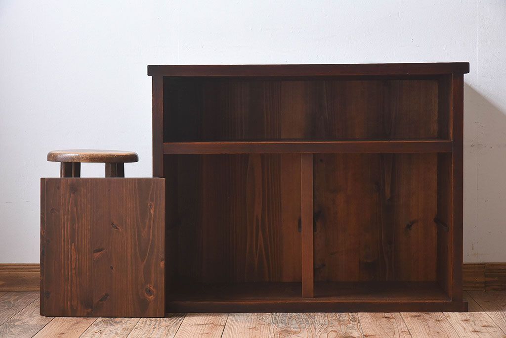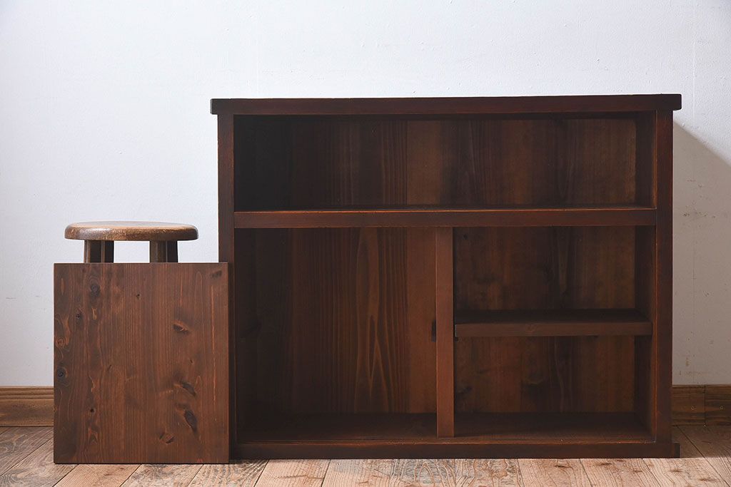 ラフジュ工房> キャビネット・戸棚> 本箱 > レトロ家具 和製アンティーク レトロなガラス入り収納棚(戸棚、食器棚、本箱)