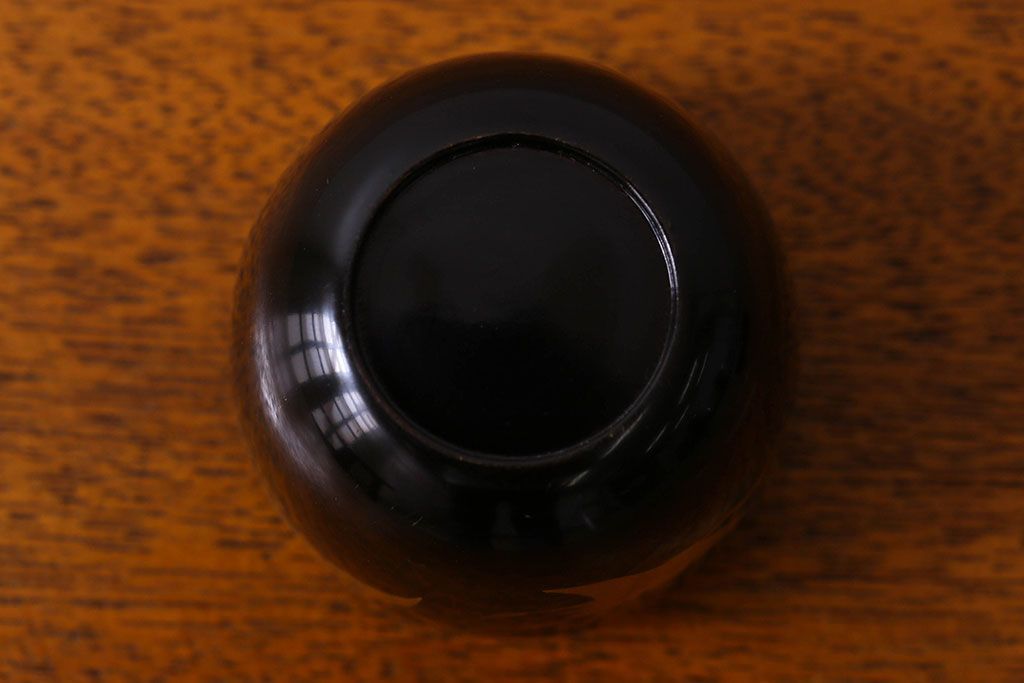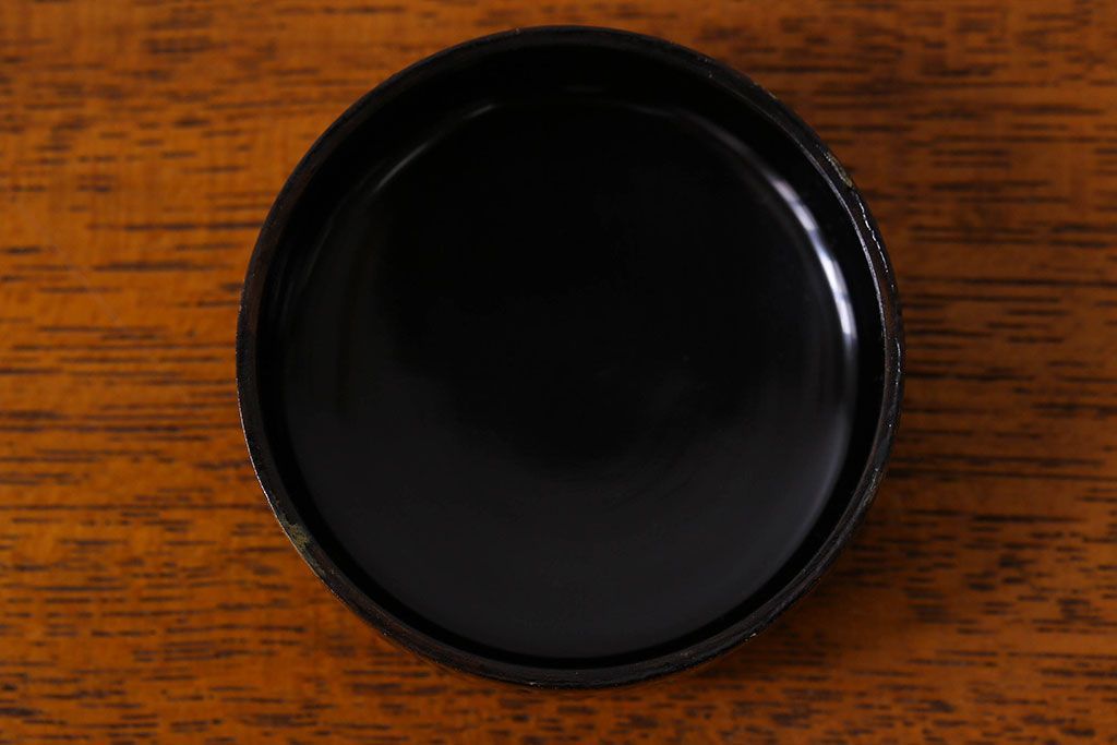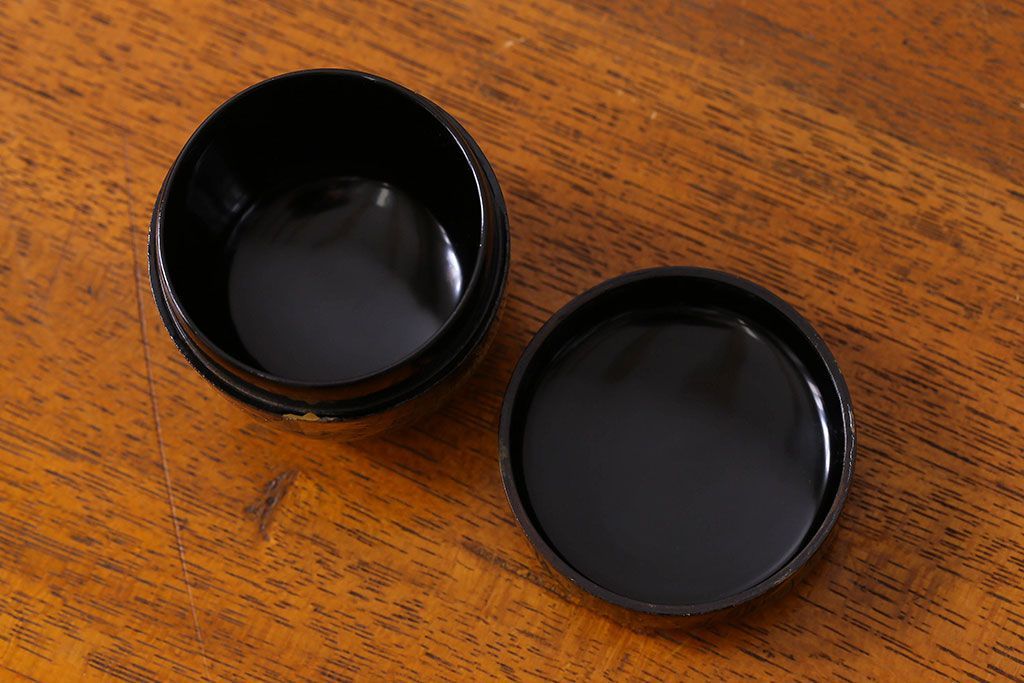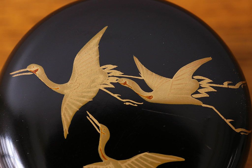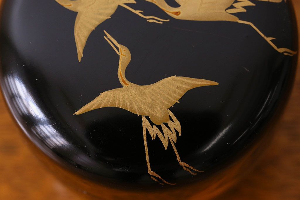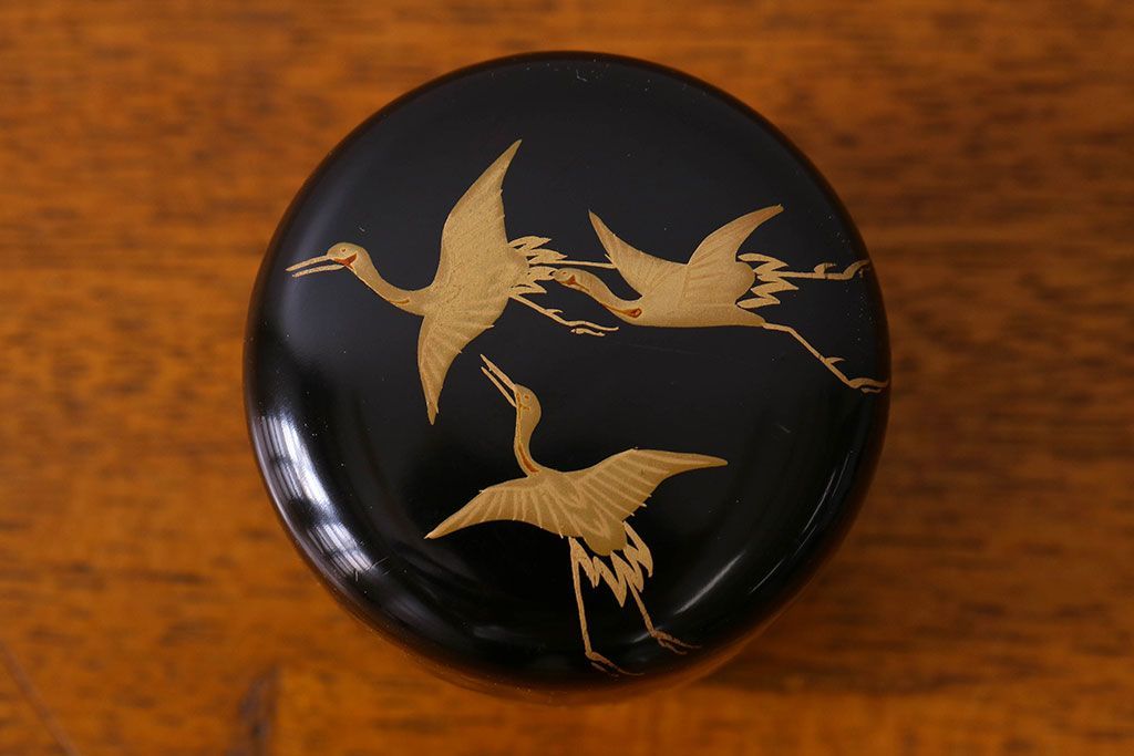 ラフジュ工房> 骨董・美術品> 骨董-漆器 > アンティーク雑貨 明治大正期 鶴蒔絵 木製棗(なつめ、茶道具)