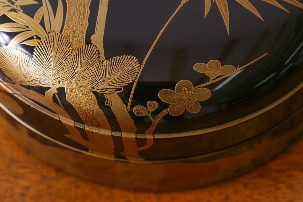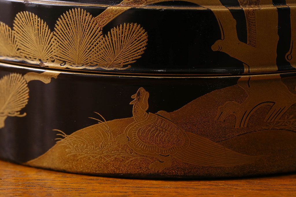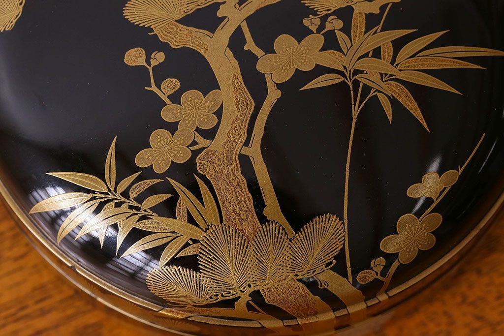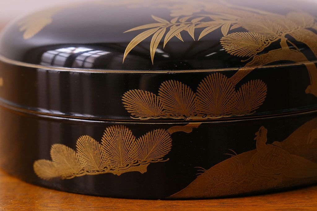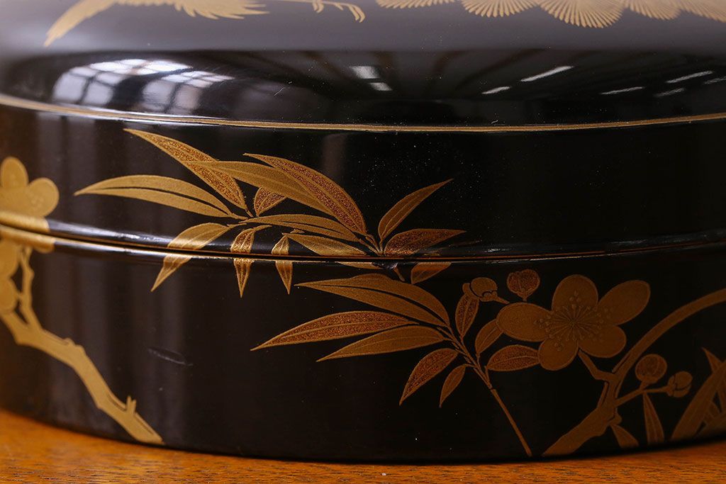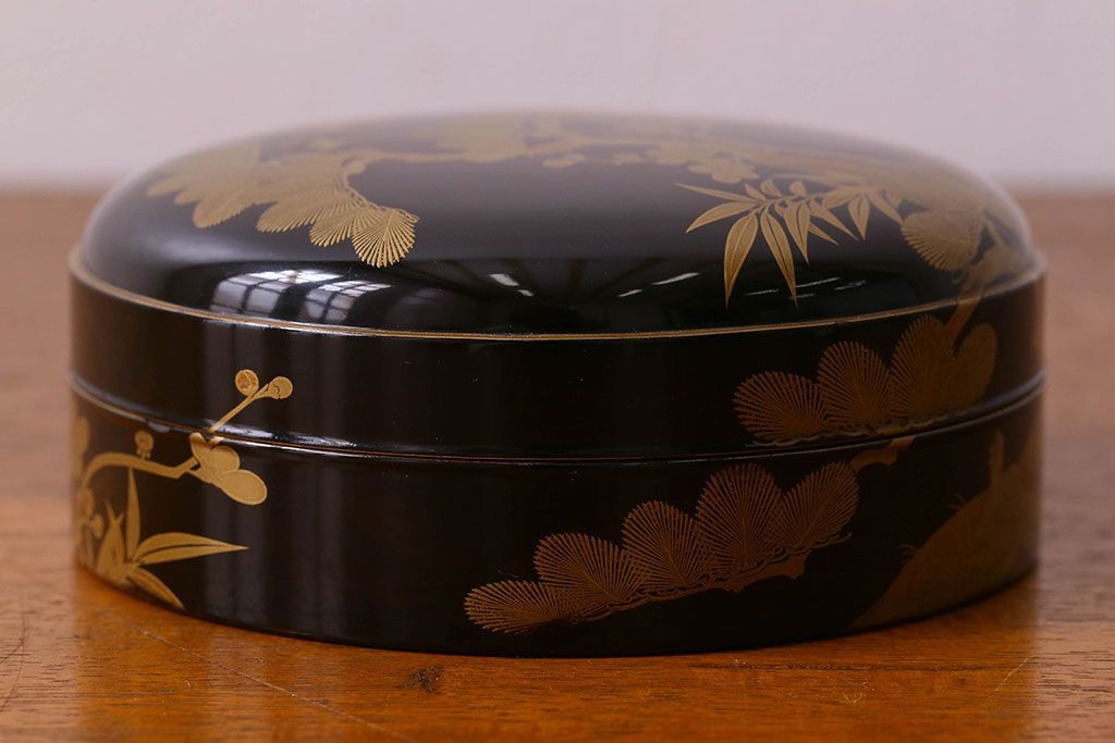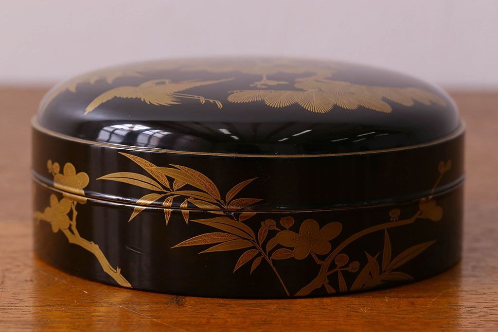 アンティーク雑貨 明治期 松竹梅鶴亀図 木製時代箱・蒔絵(小物収納箱、茶道具)