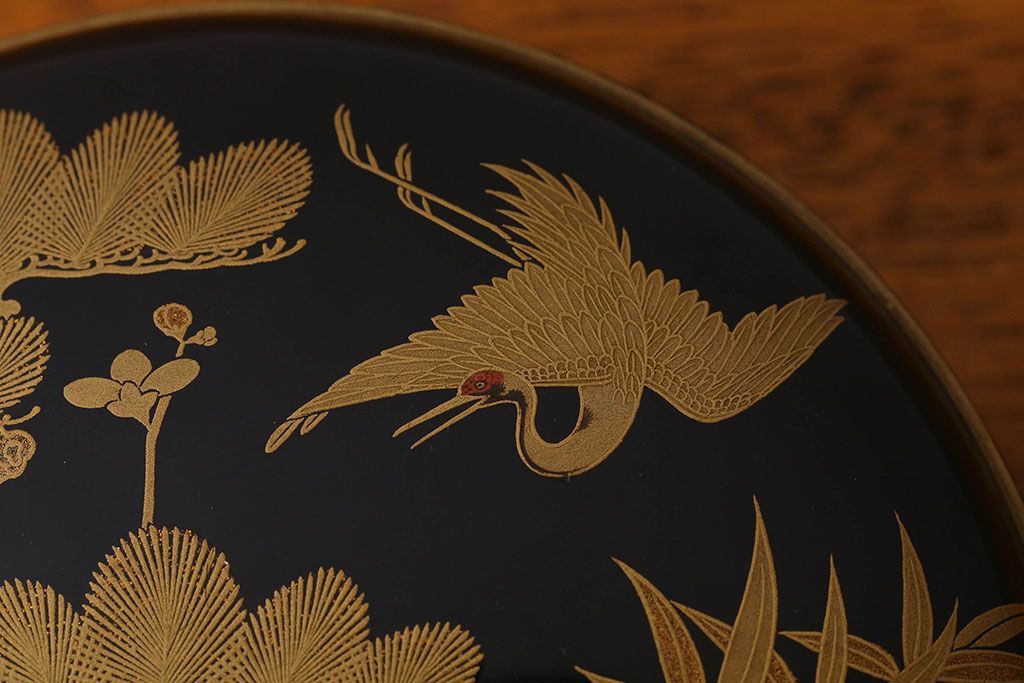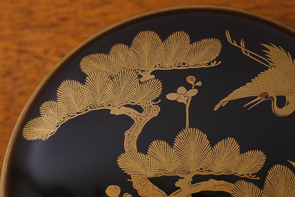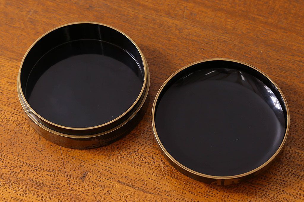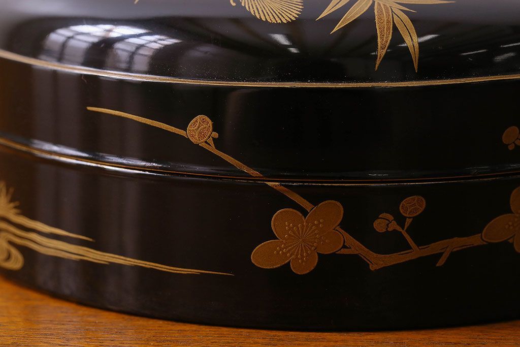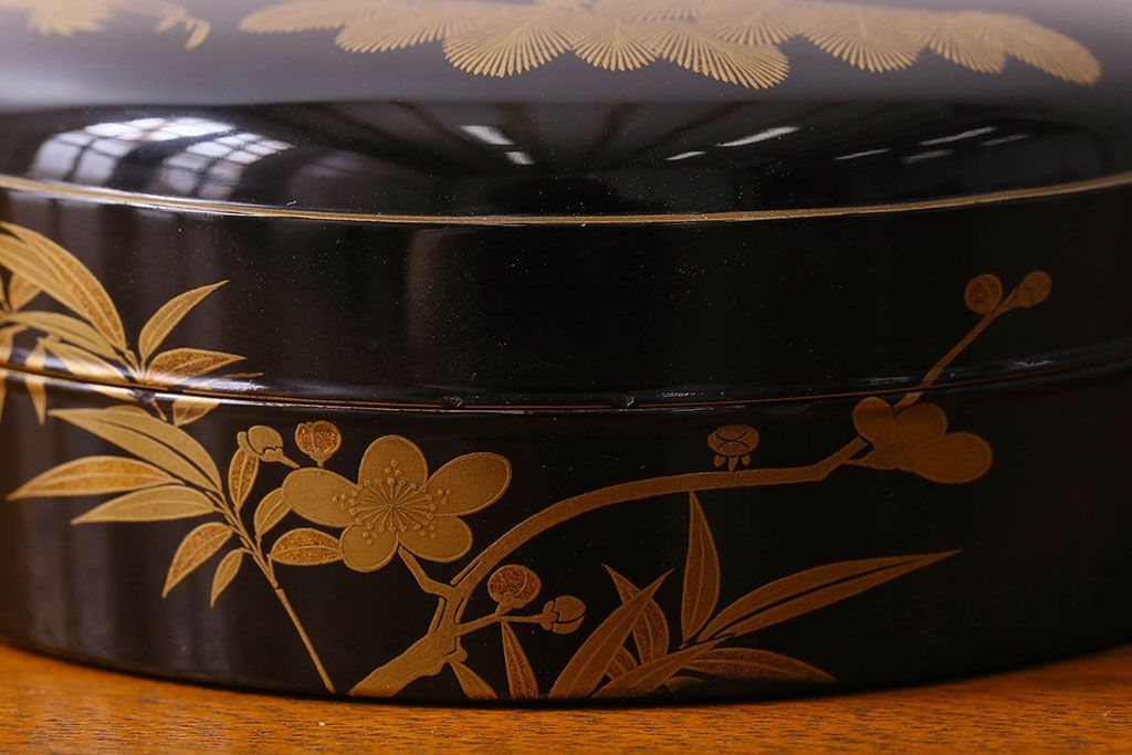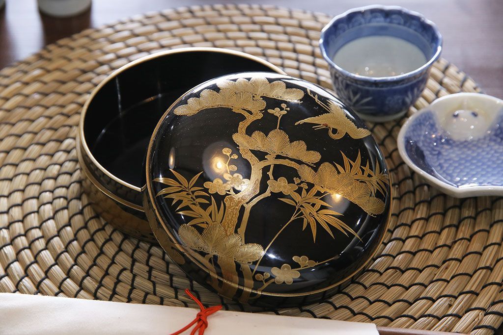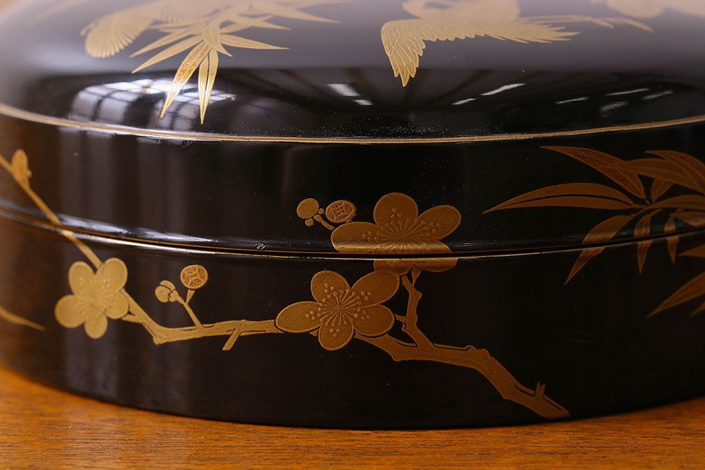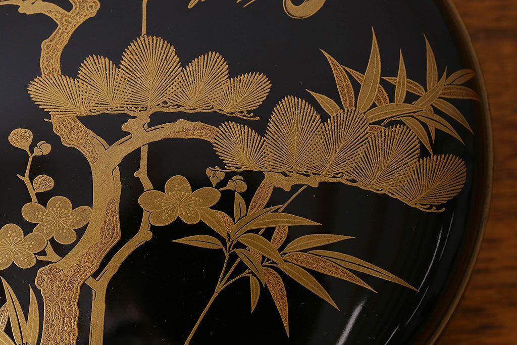 アンティーク雑貨 明治期 松竹梅鶴亀図 木製時代箱・蒔絵(小物収納箱、茶道具)